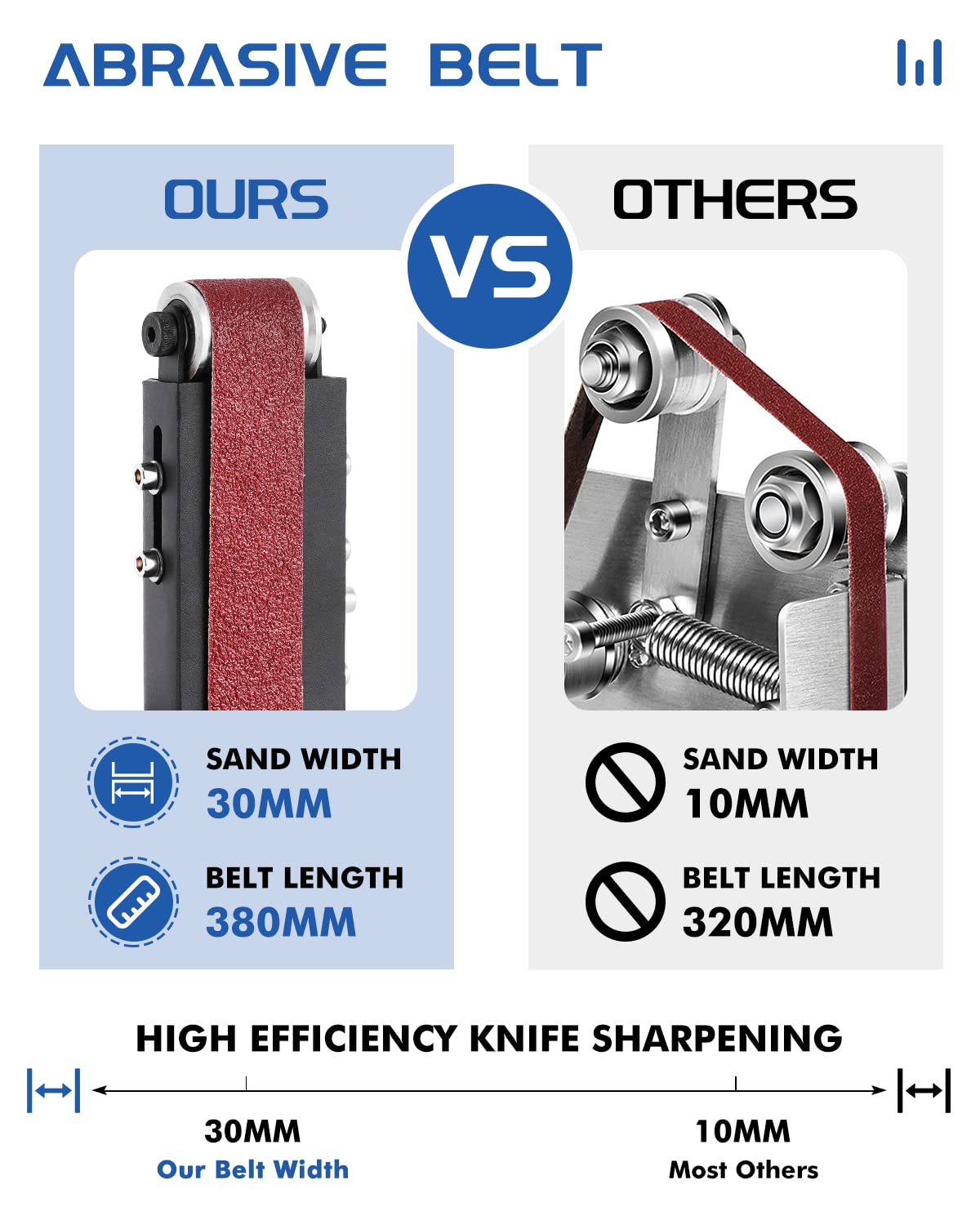 - 4.【HIGH EFFICIENCY】-- The knife sharpening belt sander with large grinding area,which can be ground at multiple angles.Note:this belt sander machine is suitable for sanding small objects,rather than large ones.
