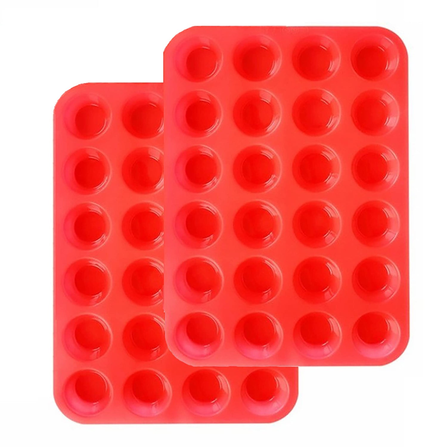 Mini Muffin &Cupcake Set, 24 Cups 2-Pieces, Nonstick Silicone Baking Pan, BPA Free and Dishwasher Safe, Great for Making Muffin Cakes, Tart, Bread (24 Cups Red,2 PCS)