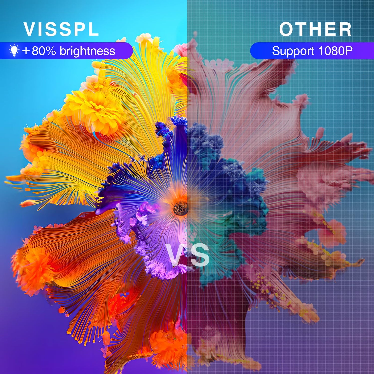 - 【Full HD 1080P & Eye Protection】The VISSPL 2024 projector supports 1080P resolution for stunning visuals. Powered by advanced LED technology and a uniform illumination method, our projector guarantees exceptional image quality, delivering a dynamic and color-vibrant effect, minimizing the impact of blue and direct light. Perfect for safeguarding children's eye health! For optimal performance, we recommend using video projector in a dark environment to fully enjoy its capabilities.