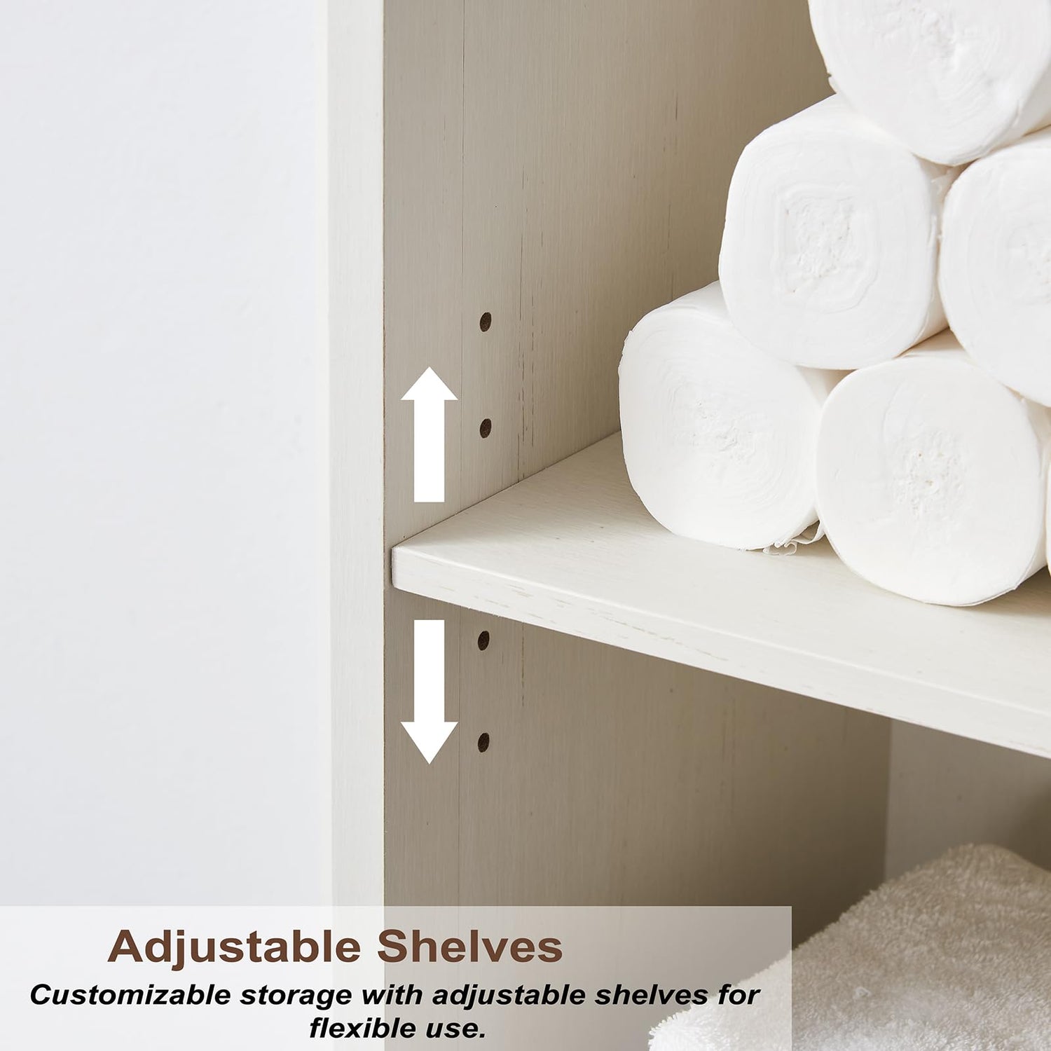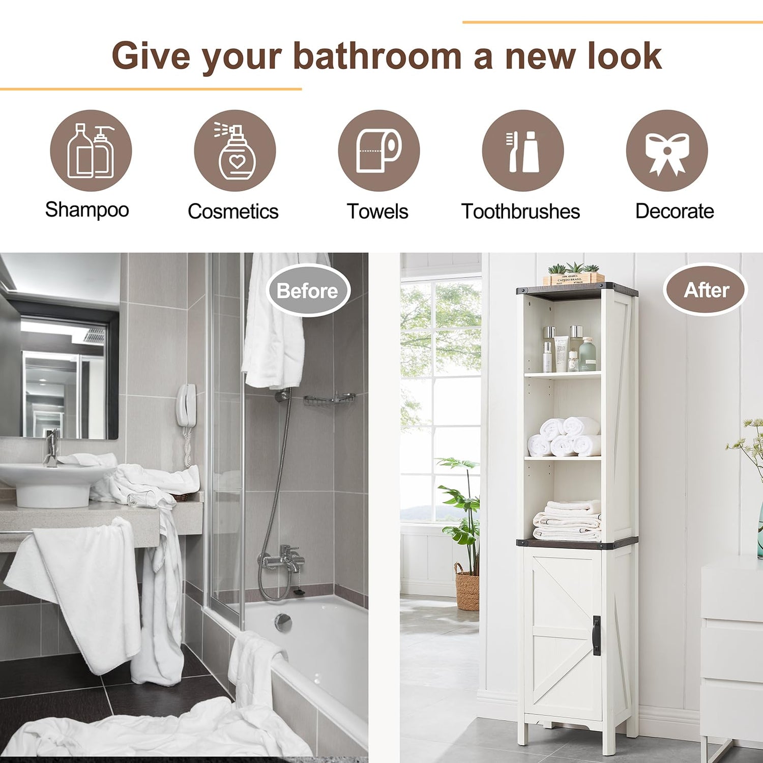 - Farmhouse Cabinet: Bathroom cabinet 12.48" x 12.20" x 70.87 " with three open shelves that can organize and display books, collectibles, bathroom necessities, or other items, detachable shelves make storage space more flexible to accommodate different storage needs, keeping your home neat and organized