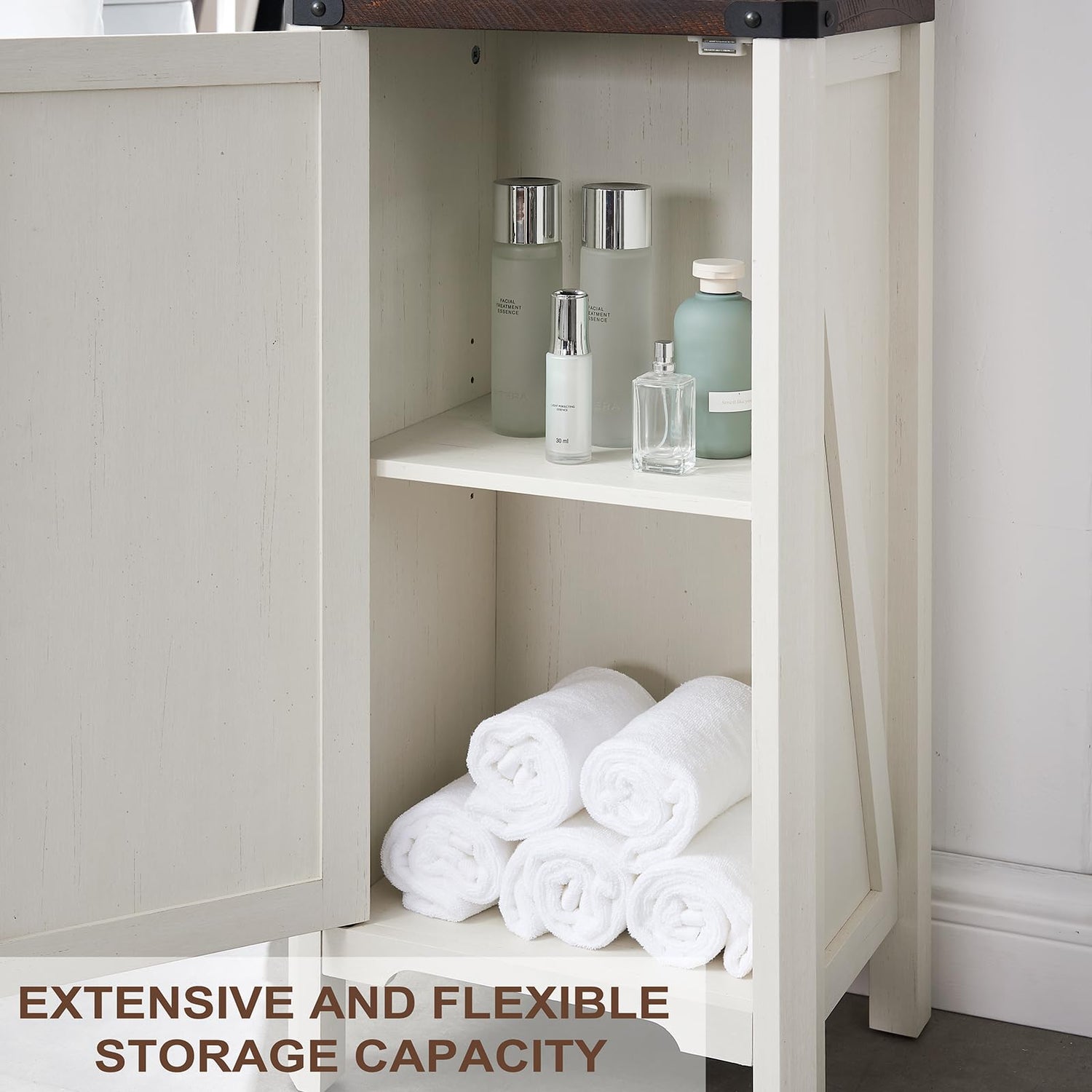 Minifeel Bathroom Storage Cabinet, 5-Shelf Farmhouse Storage Cabinet with Barn Door&Adjustable Shelves, Bathroom Organizer for Living Room, Kitchen (Antique White)