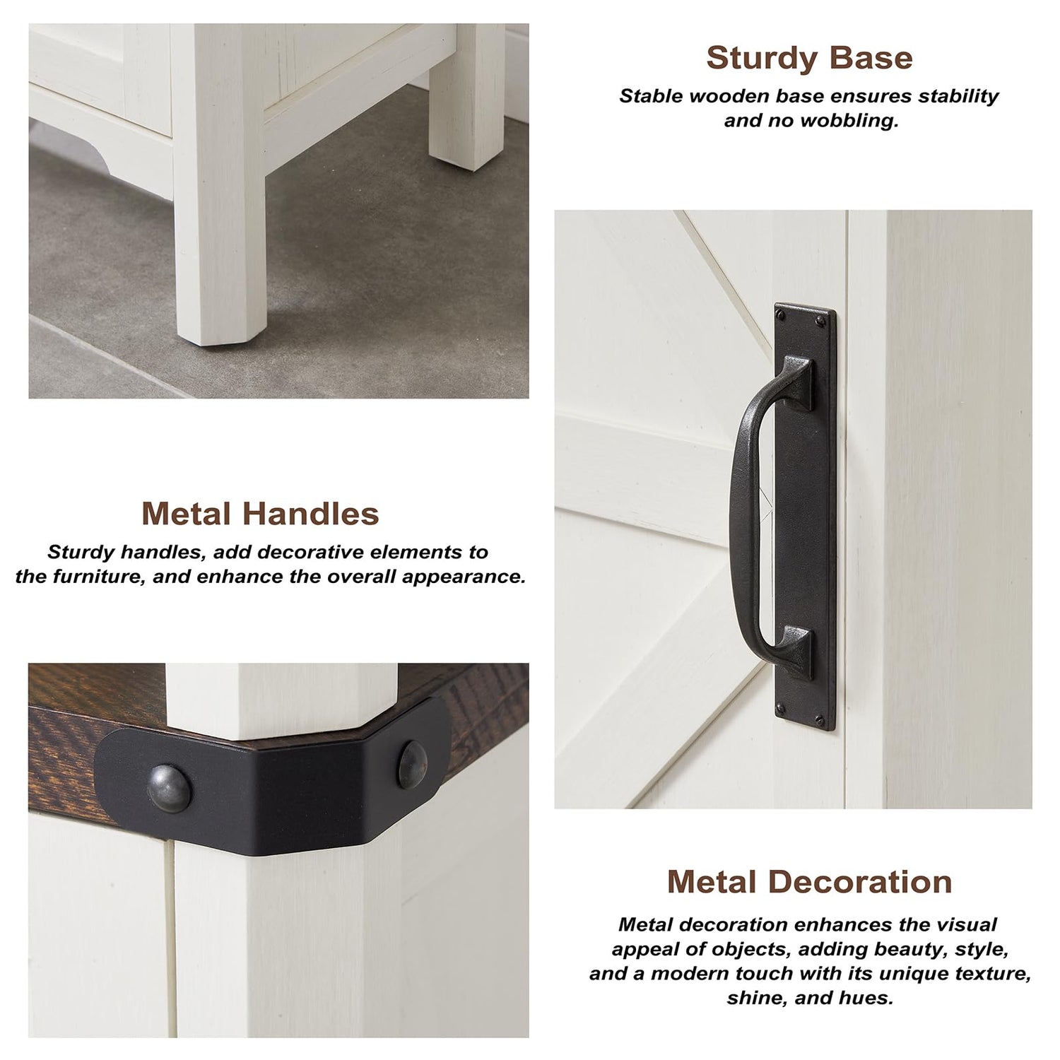 - Farmhouse Country Style: This 68-inch small bathroom storage cabinet features barn doors that add a touch of rustic charm to your living room, kitchen, and bathroom