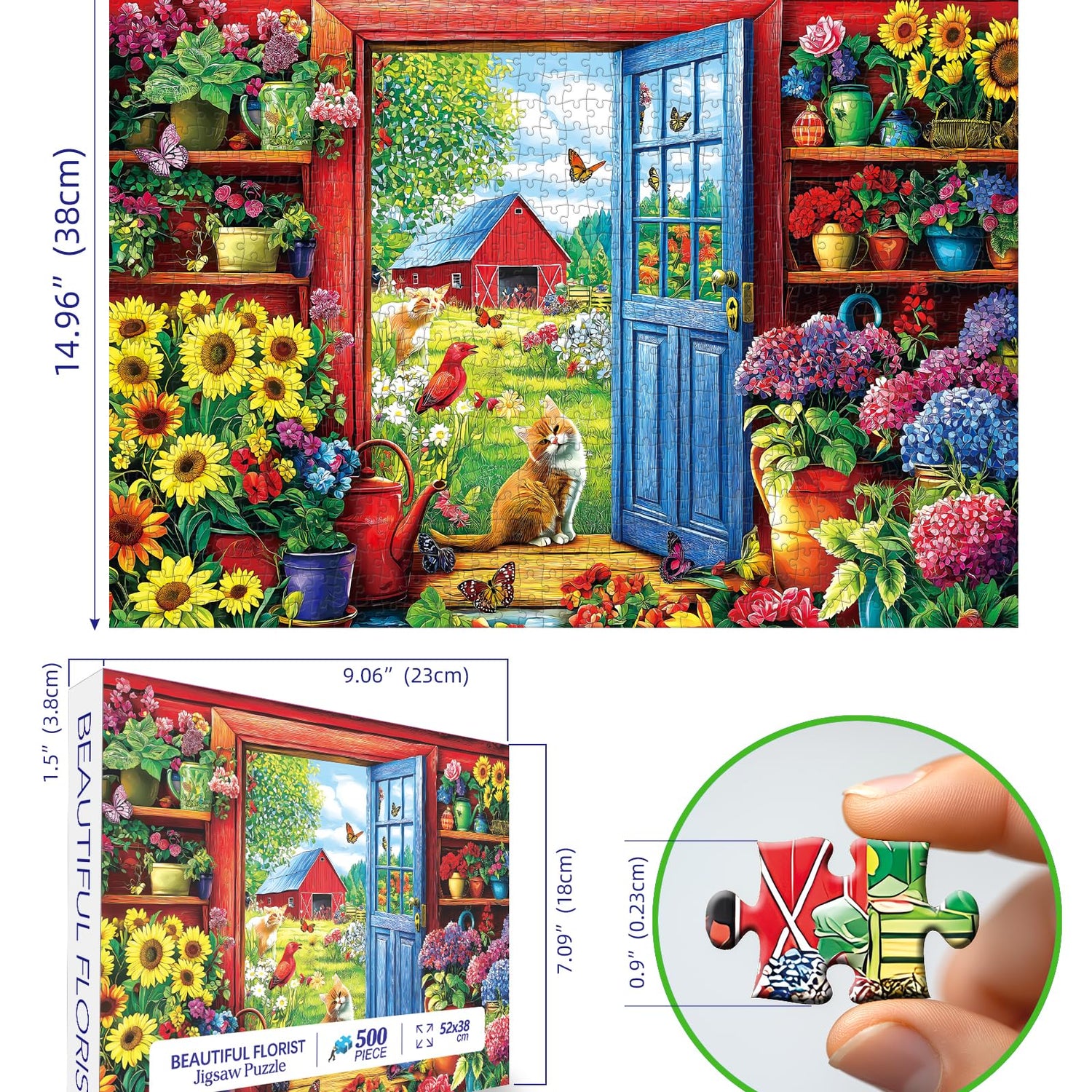 - 500-PIECE CHALLENGE - Immerse in the vibrant and colorful scene of inside garden shed on a farm, featurs the detailed rural scenes filled with flora and fauna. Each set features an engaging 500-piece puzzle, a HD reference poster, and a puzzle gift box