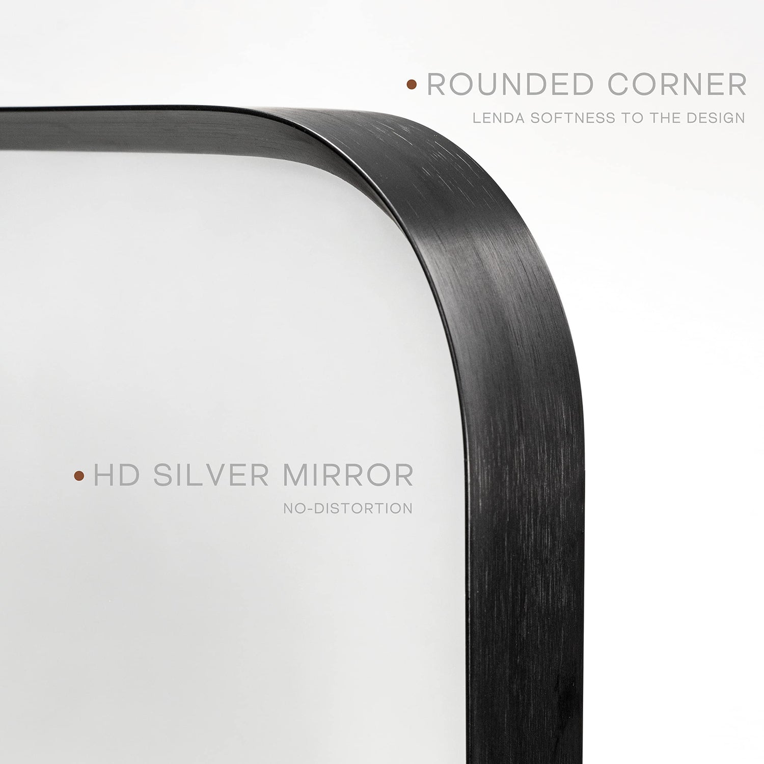 Minuover Wall Mount Mirror for Bathroom, Brush Black Metal Framed Rounded Corner Rectangular Vanity Mirror (20" x 30", Black)