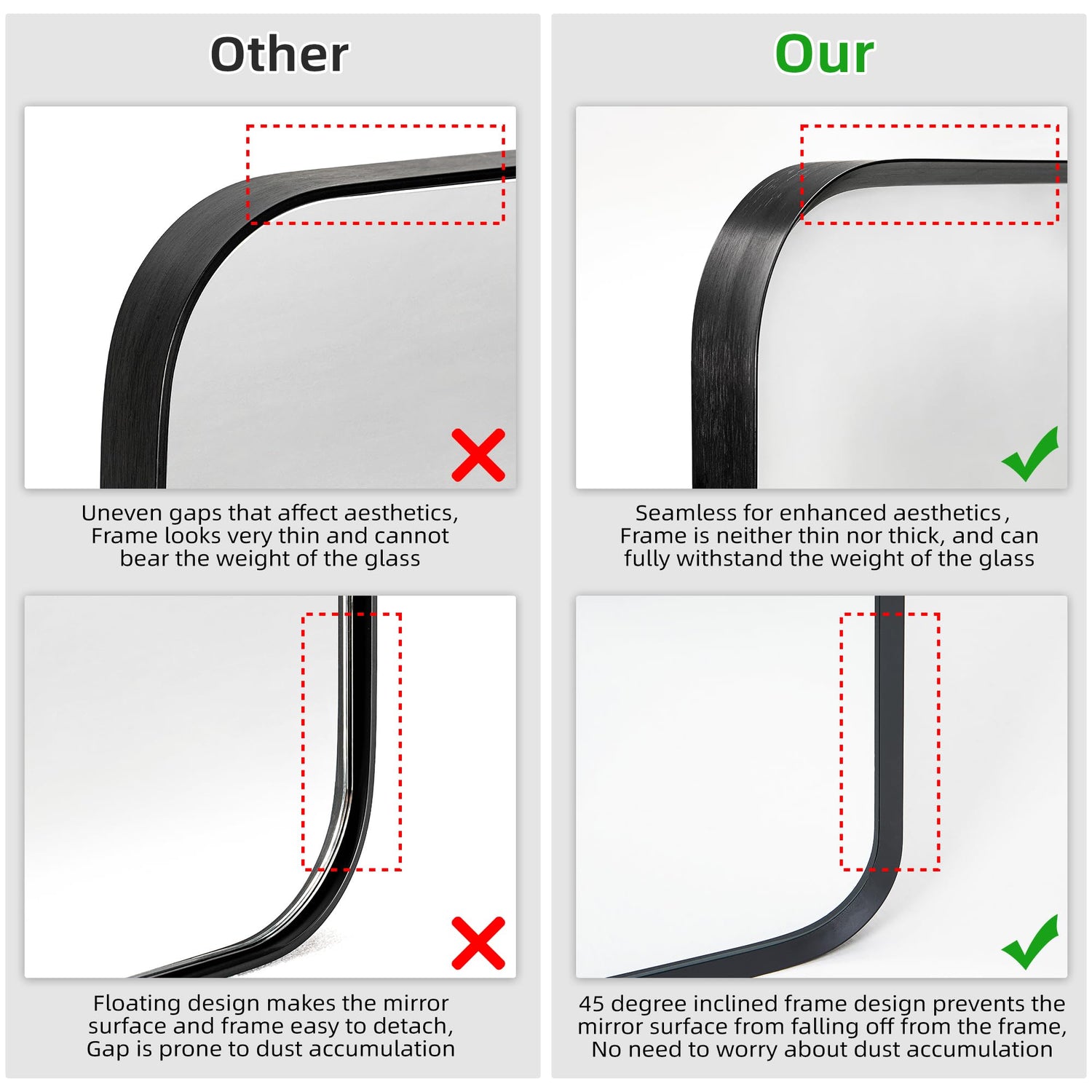 - High-quality material: With premium glass, the mirror is anti-distortion, which is perfect in reflection. The well-designed packaging ensures that the rounded corner mirror is delivered safely