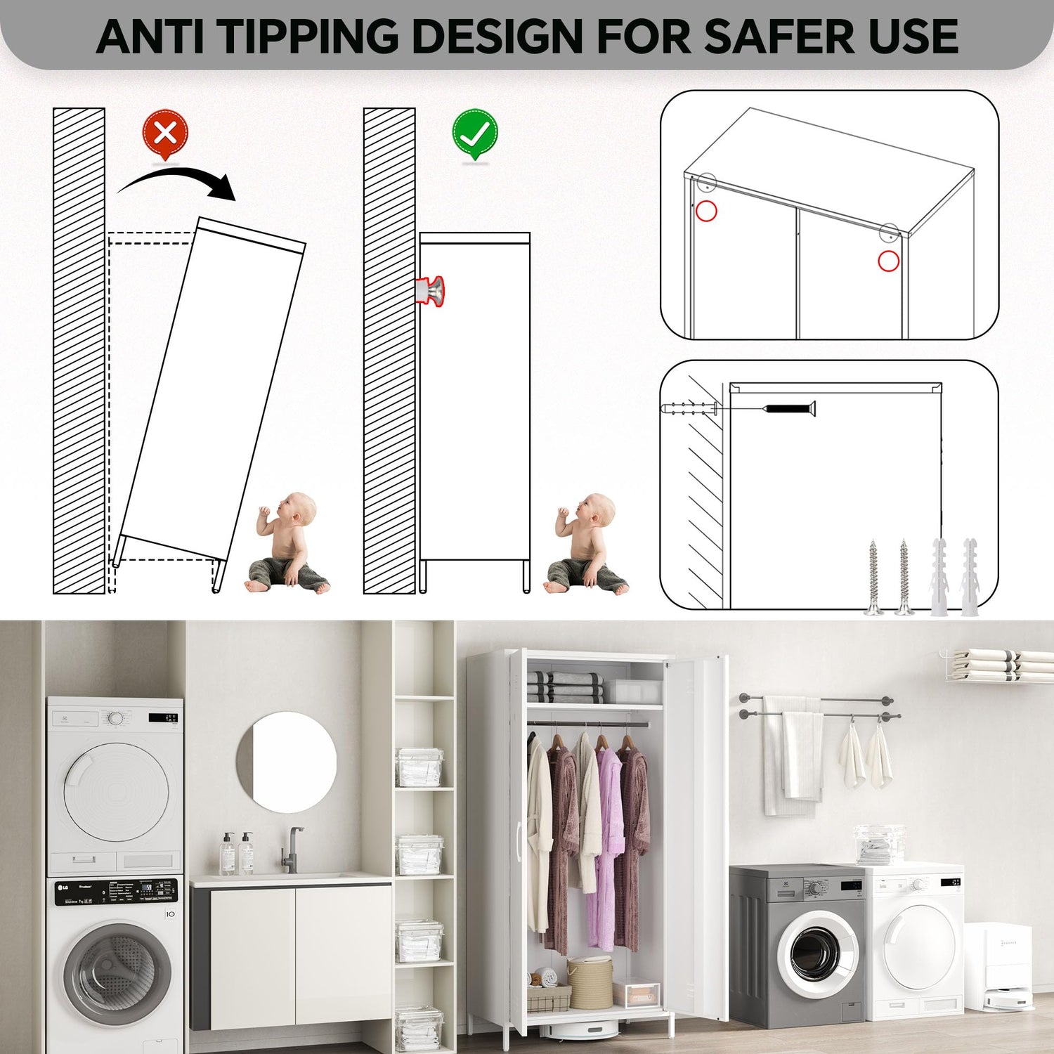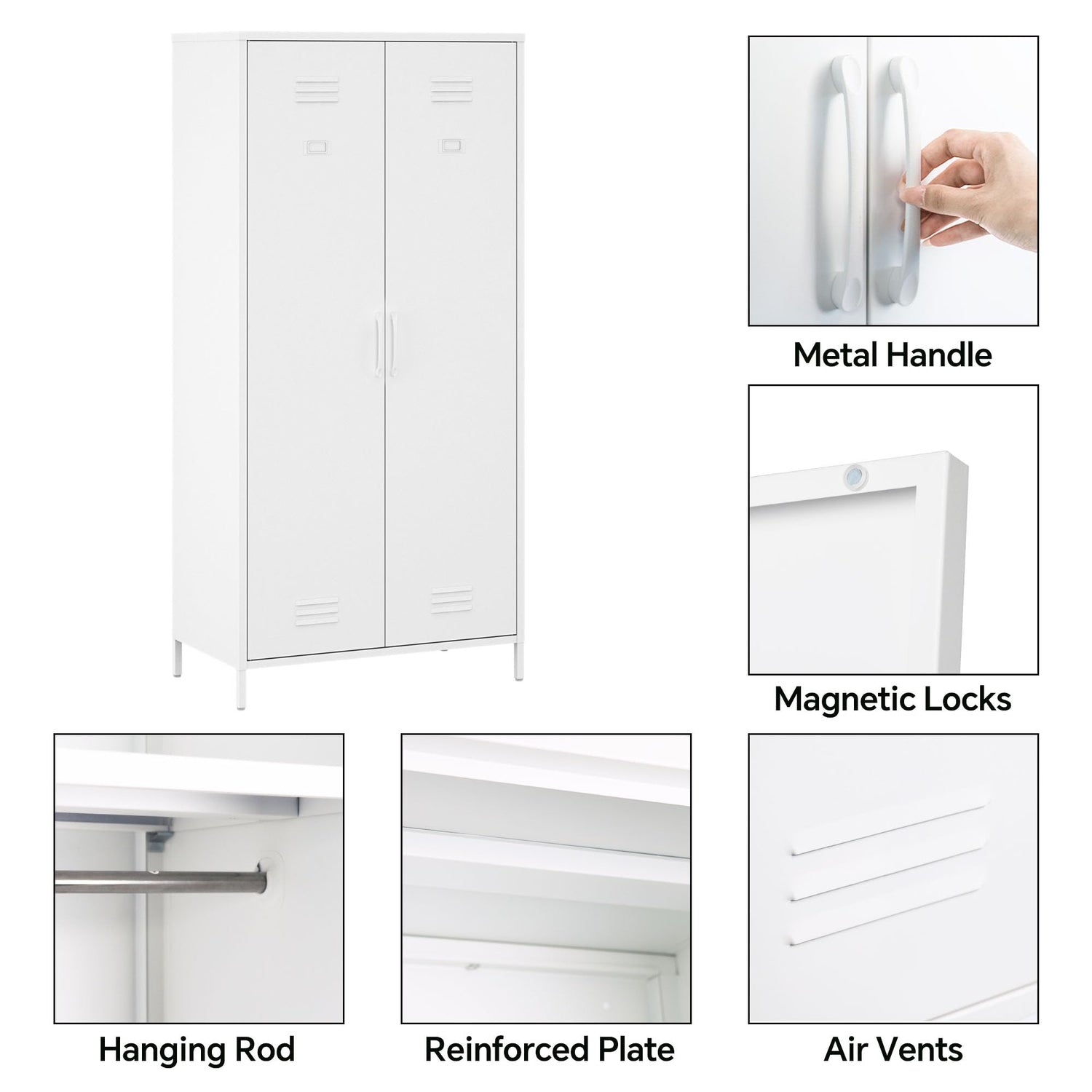 - [LARGER STORAGE SPACE]: This metal armoire offers a storage capacity of 31.89"W x 17.72"D x 66.54"H. This closet has 1 Hanging Rod and 1 Shelf, which provide greater flexibility to meet your needs.