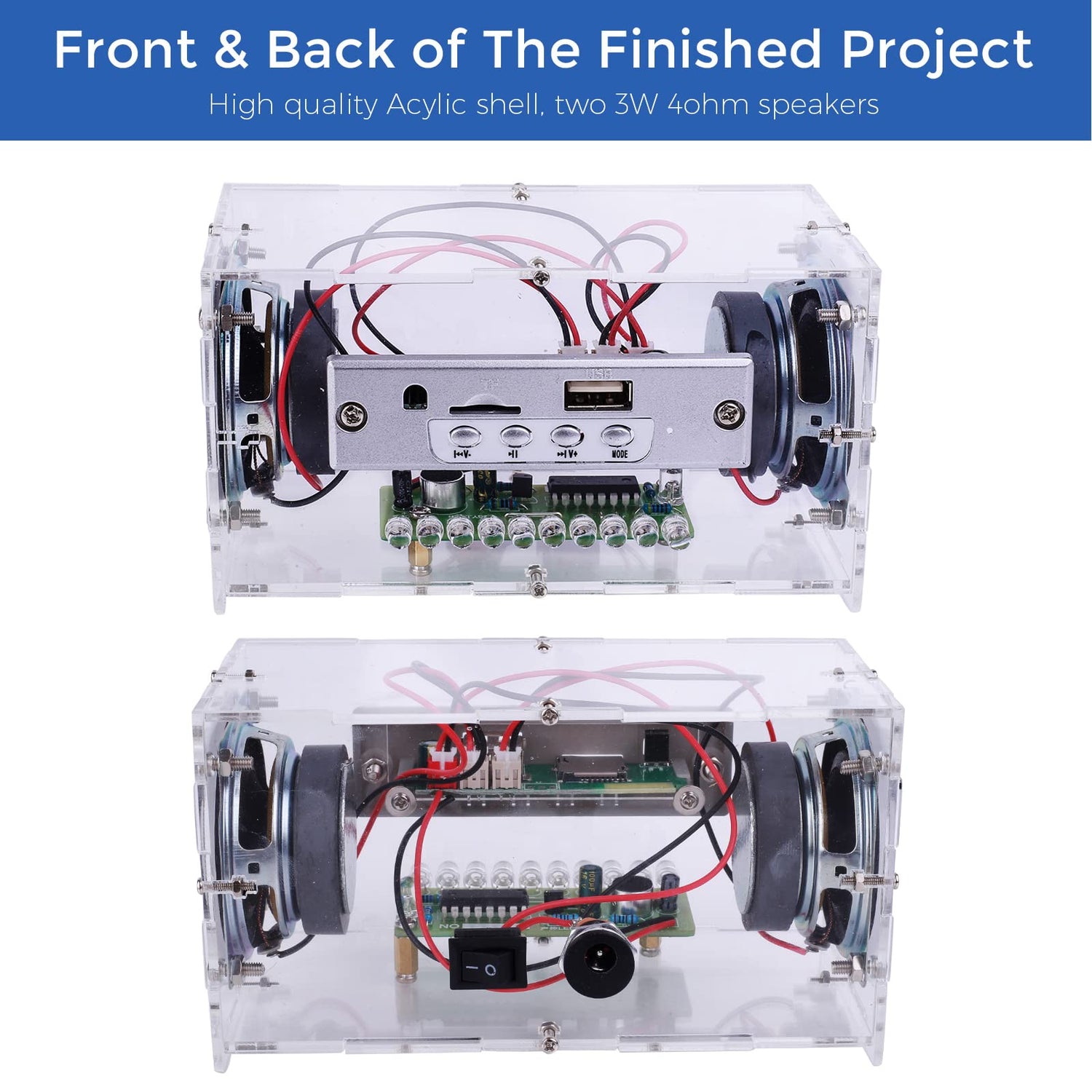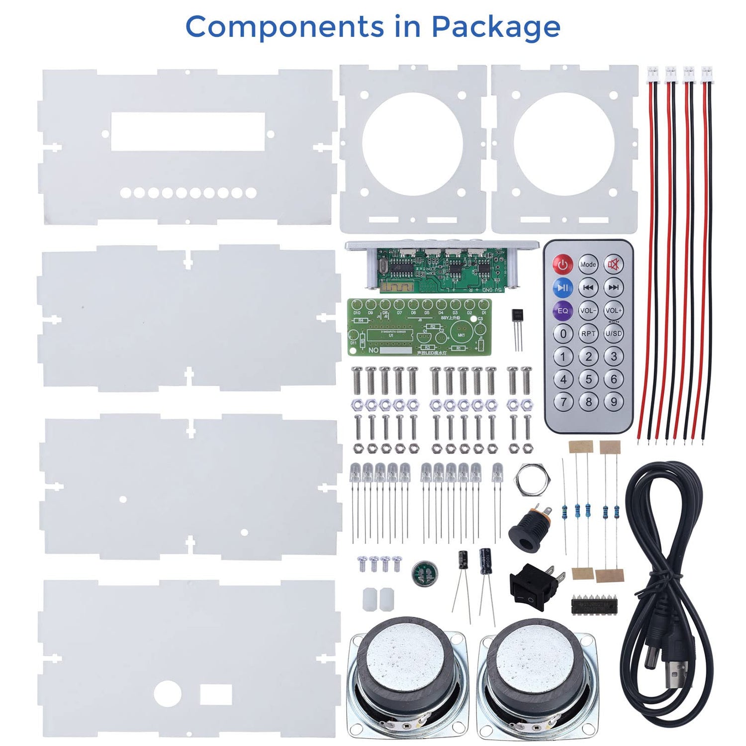 - đ”ăBluetooth-compatible Amplifier DIY Kită: Build your own Bluetooth speaker with this DIY soldering kit! Featuring high-power dual 3W speakers, colorful LED flashing lights, and transparent acrylic shells, this electronic kit is both challenging and fun. Perfect for students and DIY hobbyists. Give the present of hands-on learning for Christmas, Birthday, Holiday, or any special occasion!