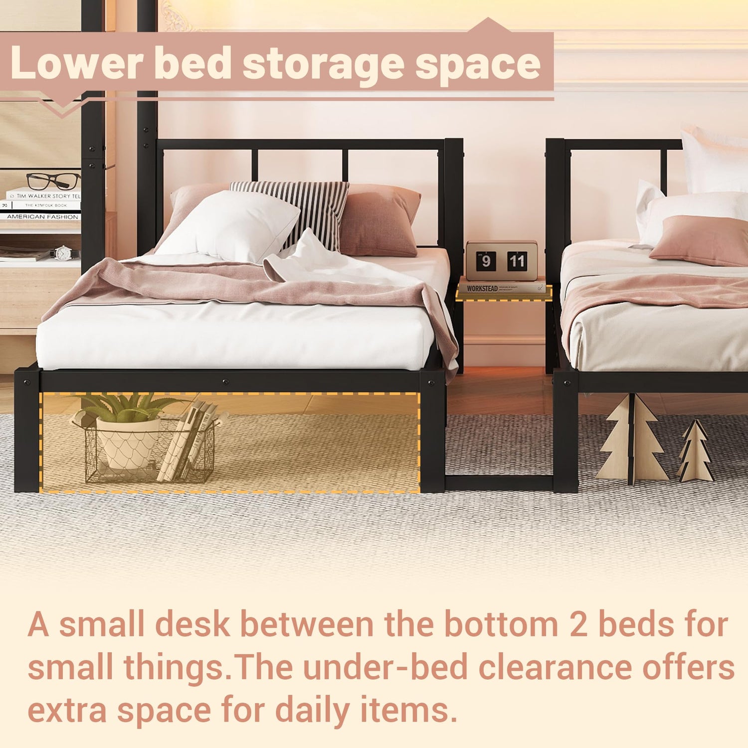 - Built to Last-Our twin XL over 2 twin triple bunk bed is made with a super sturdy metal frame and thick, heavy-duty steel legs. It’s designed to handle the weight and rough-and-tumble play of active kids. We’ve also used advanced anti-rust technology to ensure the bed stays in great condition for years to come. You can trust that this bed will be a safe and durable addition to your home.