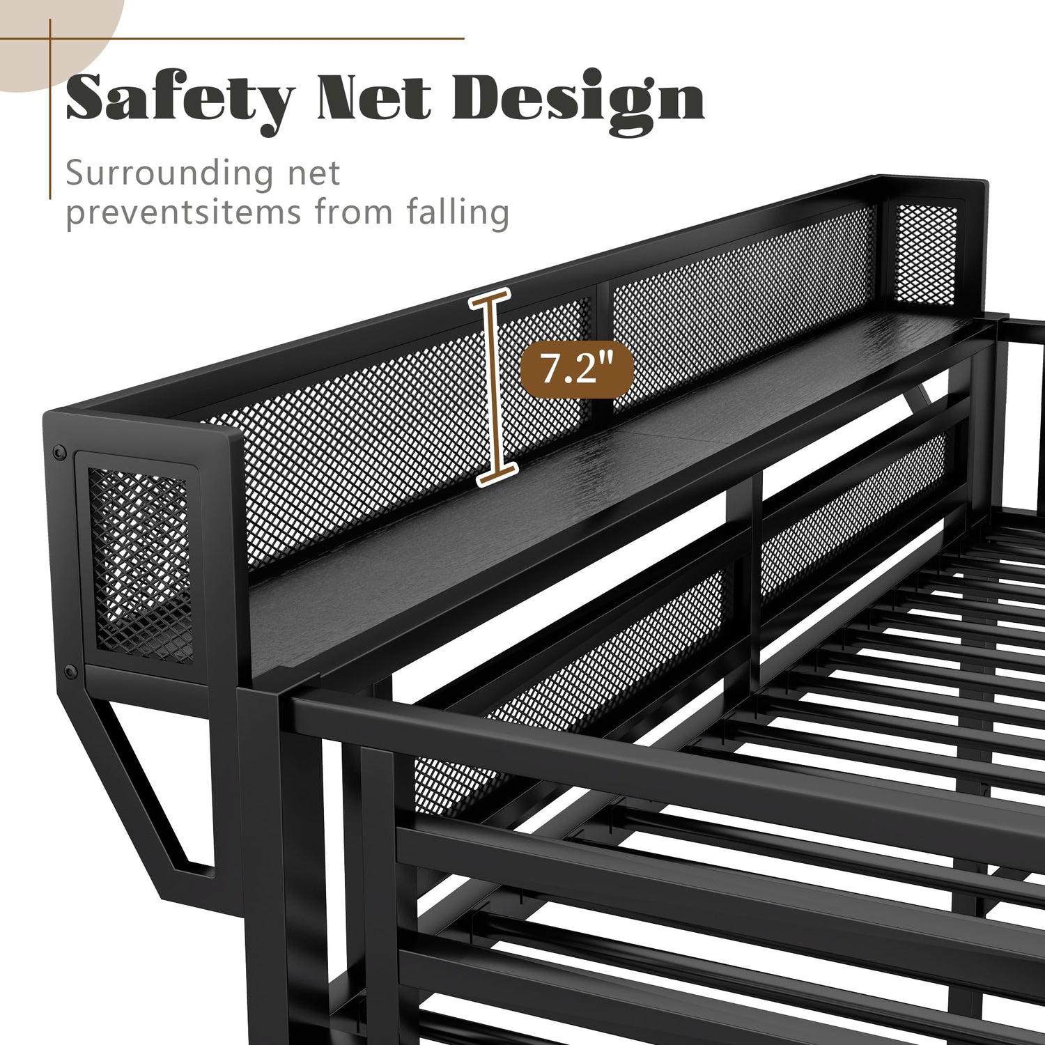 - 【Heavy-duty Metal Loft Beds】: Manufactured from quality metal, the strengthened frame is capable of holding up to 350lbs on the top bunk. Built to last, this metal loft bed frame full size is firmly secured with heavy duty screws for solid stability you can rely on. the bed frame features 20 metal slats , perfect mattresses foundation. We provide strong Anti-Tipping Nails to securely fasten the bed to the wall for added safety.