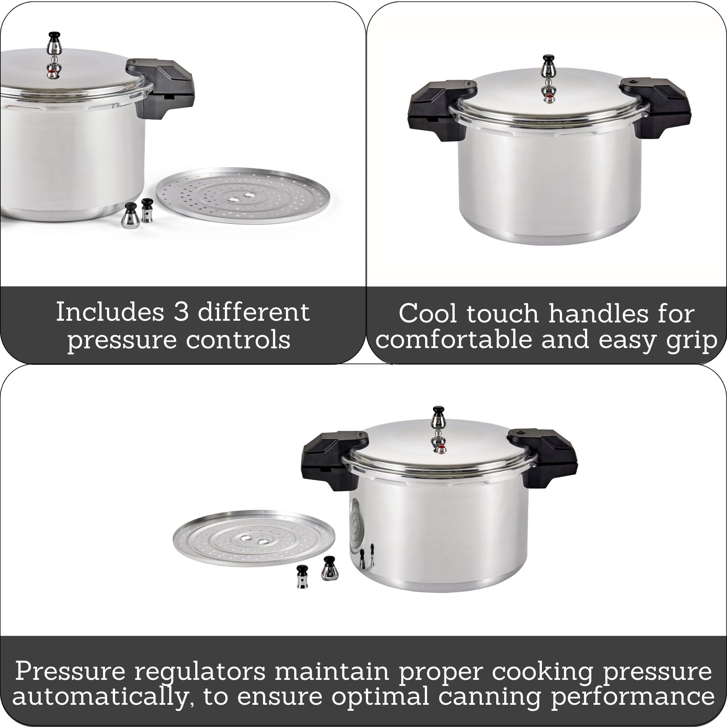 - CANNING ESSENTIAL: Ideal for canning season and cooking under pressure to reduce cooking time, this canner's secure locking mechanism and steam release valve provide added safety, making it a practical addition to any kitchen