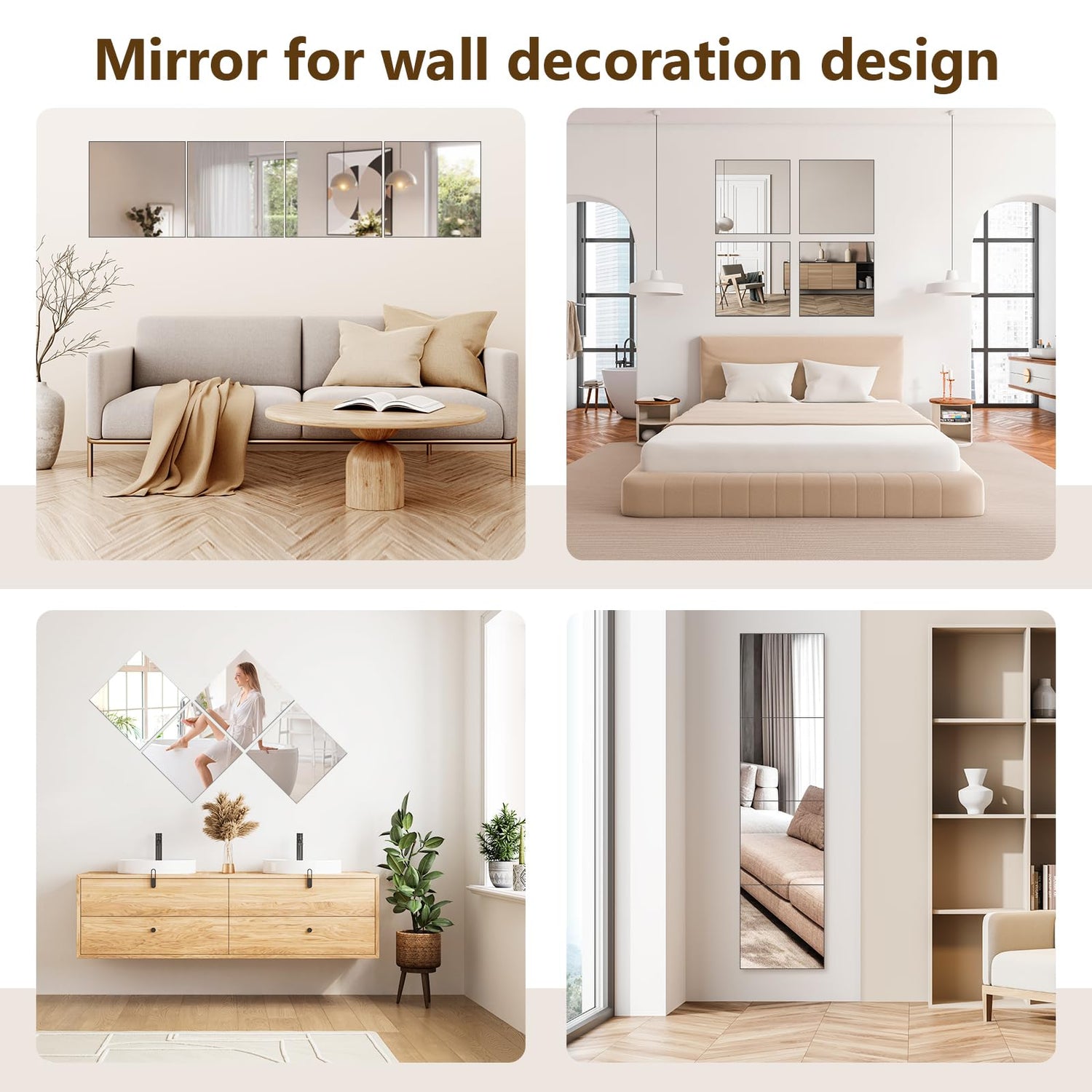 Mirror Wall Full Length,12X12 Inch Unbreakable Mirror Tiles for Bedroom Home Gym Door, Acrylic Squares Mirror Full Body Shatterproof Mirror Stickers for Walls,Mirror Sheets (4pcs)