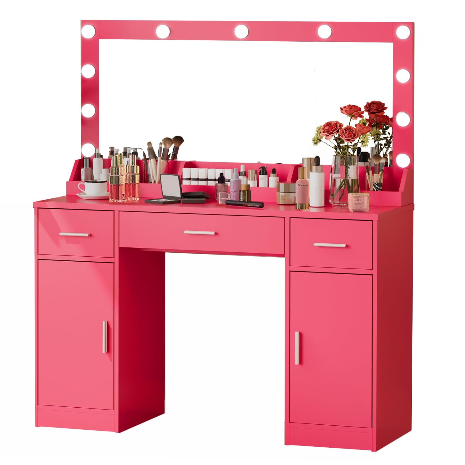 - Smart Storage Design: Features three spacious drawers and two oversized vertical cabinets, offering ample storage space for organizing and storing various beauty products and accessories. Thoughtfully designed drawer dividers and organizers allow for easy categorization and organization of cosmetics, keeping the vanity tidy and orderly.
