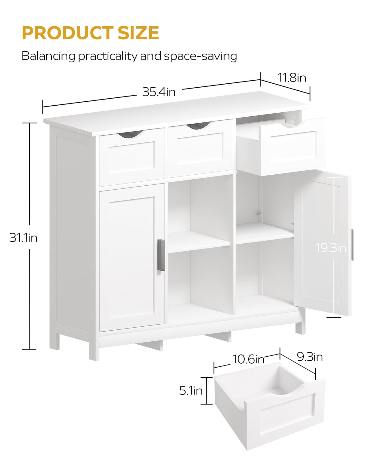 MIRROTOWEL Storage Cabinets,Wooden Floor Cabinet,with Drawers and Shelves Storage Cabinets,Accent Cabinet for Living Room, Bedroom,Bathroom Furniture Home Decor(White)