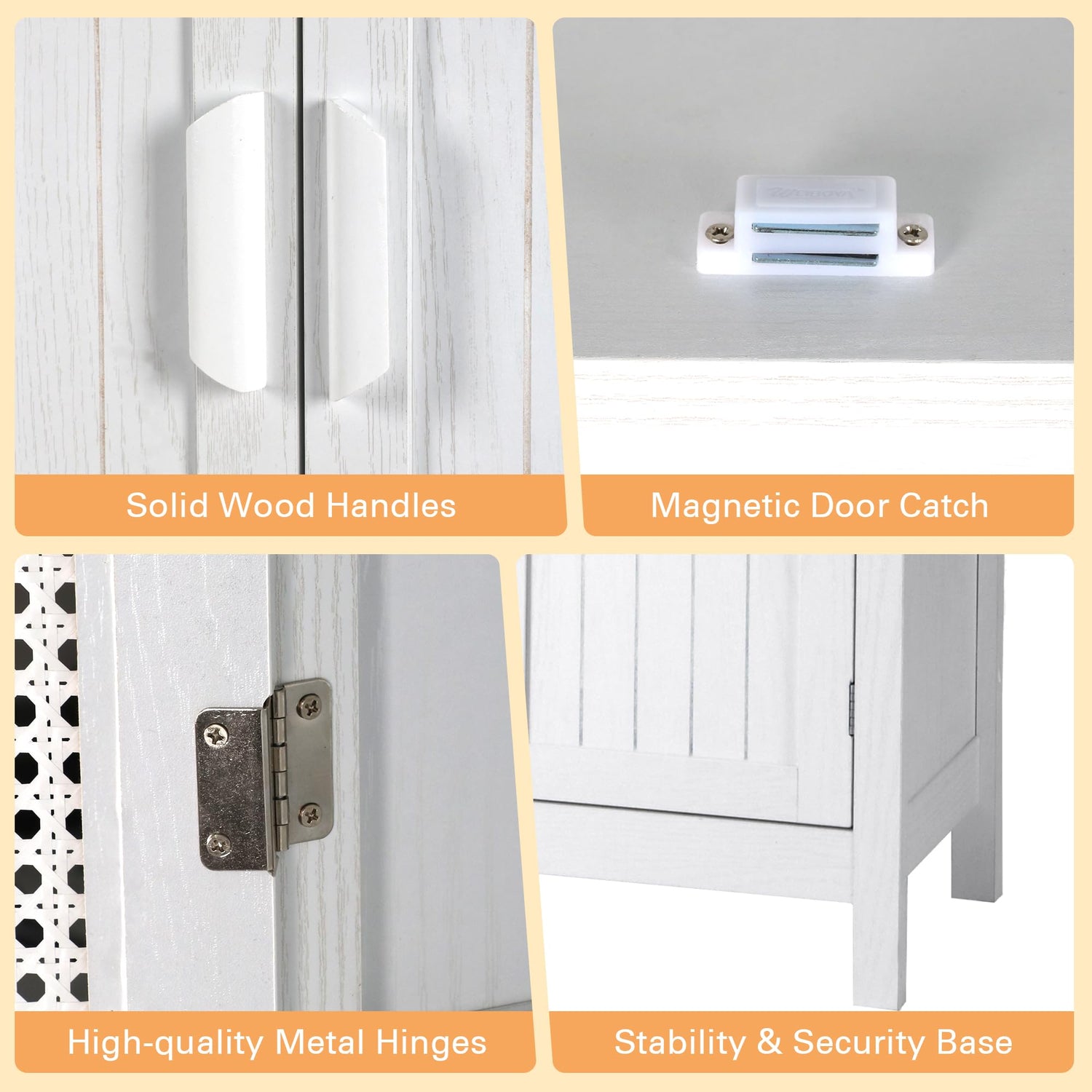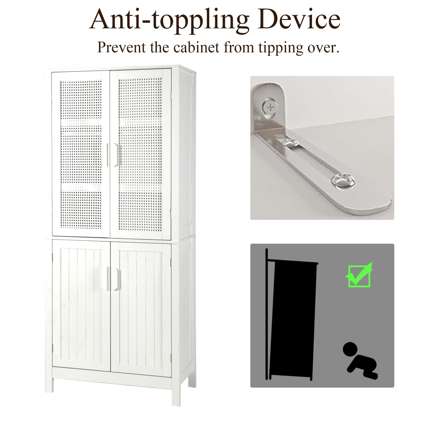 - 【Unique Rattan Doors Design 】 Embrace farmhouse charm with our tall kitchen storage cabinet featuring 2 rattan doors, which is tough ,durable and breathable. Rattan's rustic atmosphere and exquisite white wood grain effortlessly blends modern rustic aesthetics into your kitchen or living room, white storage cabinet enhancing any decor style.
