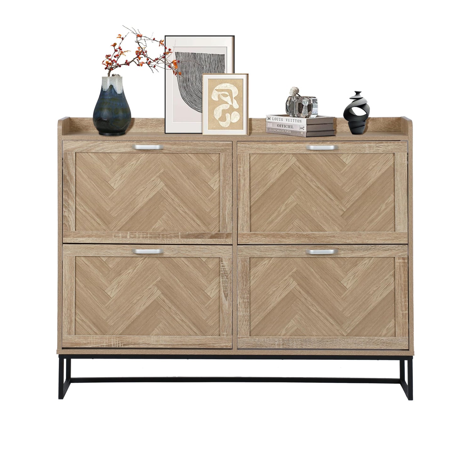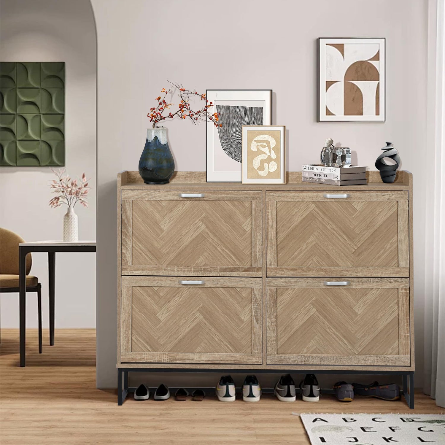 - 【Flip Drawers Shoe Cabinet】Our shoe rack cabinet with 4 flip drawers and 2 tiers inside each, each panel removable and adjustable in 2 grooves allowing customization based on shoe size or style from flats, mid boots or heels! It provides a convenient and organized solution for your footwear collection.