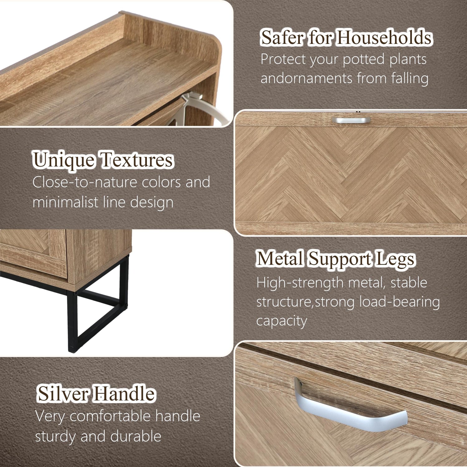 - 【High Quality & Sturdy Construction】 Our slim shoe cabinet is safe and reliable, made with high-quality MDF and metal leg for stability and strength. It features an anti-tipping device, wall-mountable for child safety. The elegant silver metal handle ensures a comfortable grip and safety during use, while the feet pads protect floors and are easy to clean.
