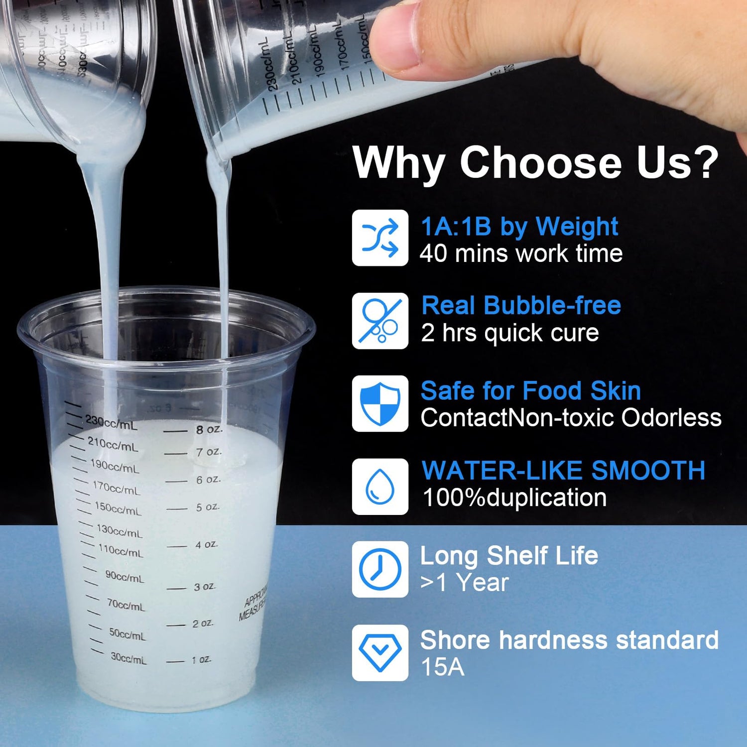 - 【No Bubbles】: No vacuum degassing is necessary。The bubbles of silicone for mold making will automatically disappear within 1 hours at room temperature due to its low viscosity feature.