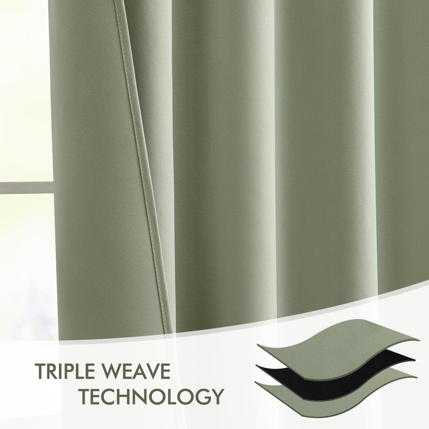 MIULEE Back Tab Sage Green Curtains 108 Inch Long 2 Panels Set for Living Room Bedroom Privacy, Rod Pocket/Pinch Pleated Light Blocking Extra Long Thermal Insulated Room Darkening Blackout Drapes