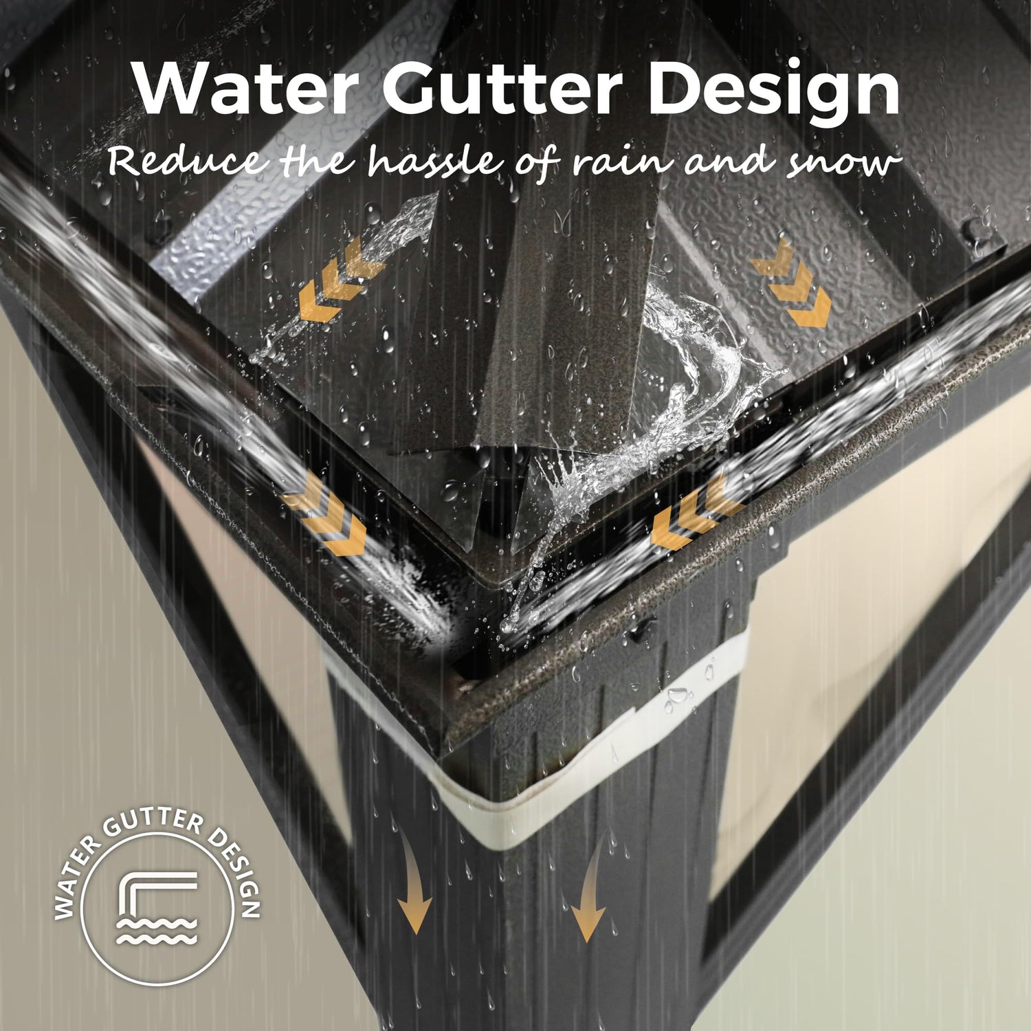 - 【Iron Double Roof】: The pavilion adopts a double roof to facilitate ventilation, which can achieve the effect of cooling under the pavilion and create a comfortable space. This product adopts iron double-layer roof structure, with durable, strong, rust prevention and other characteristics, enough to resist the rainstorm and blizzard weather, to avoid direct UV damage to your skin.