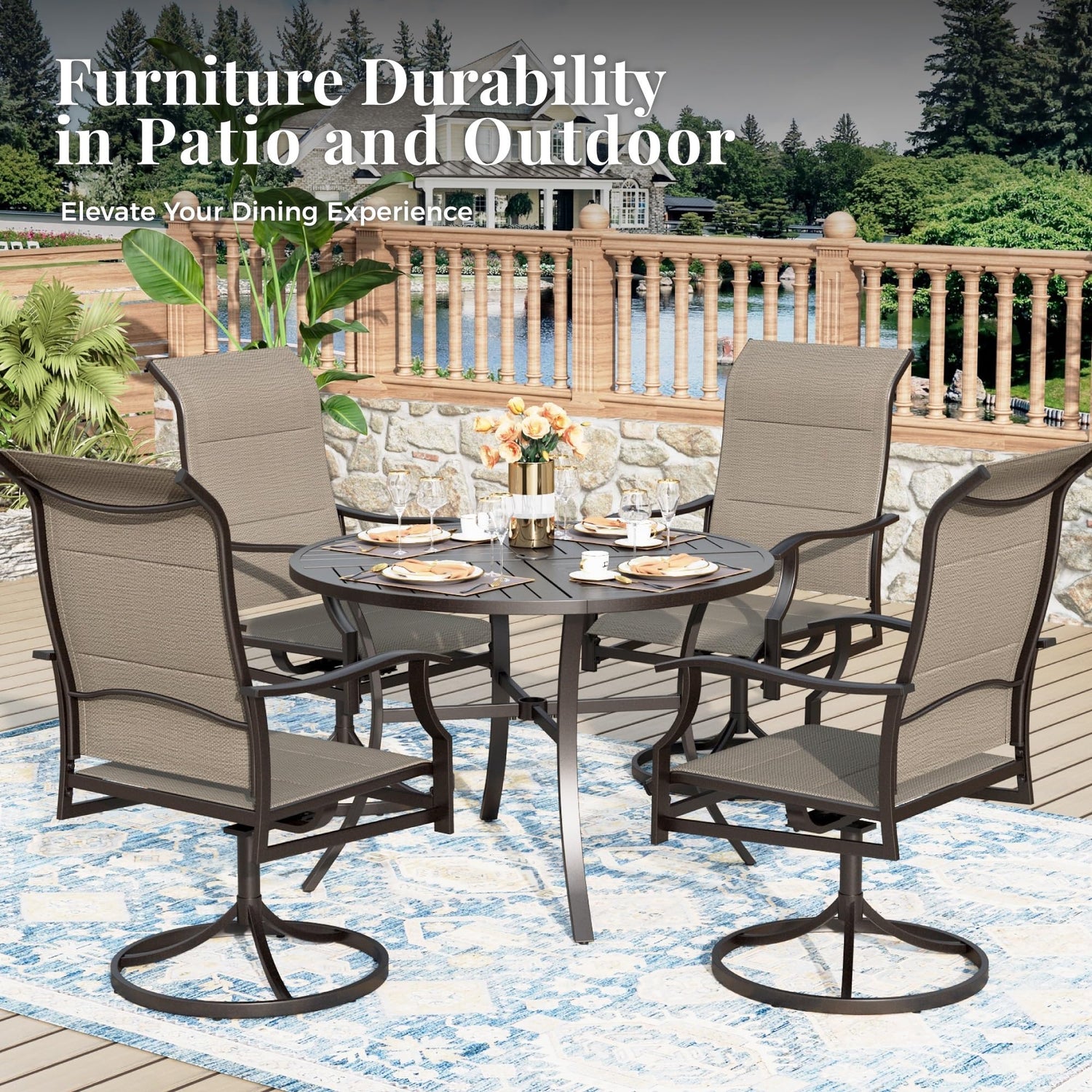 MIXPATIO 5 Pieces Patio Dining Set, Outdoor Table and Chairs, 4 x Textilene Swivel Dining Chairs and 42" Round Black Table, with 1.57" Umbrella Hole, for Cozy Garden Settings, Grayish Brown