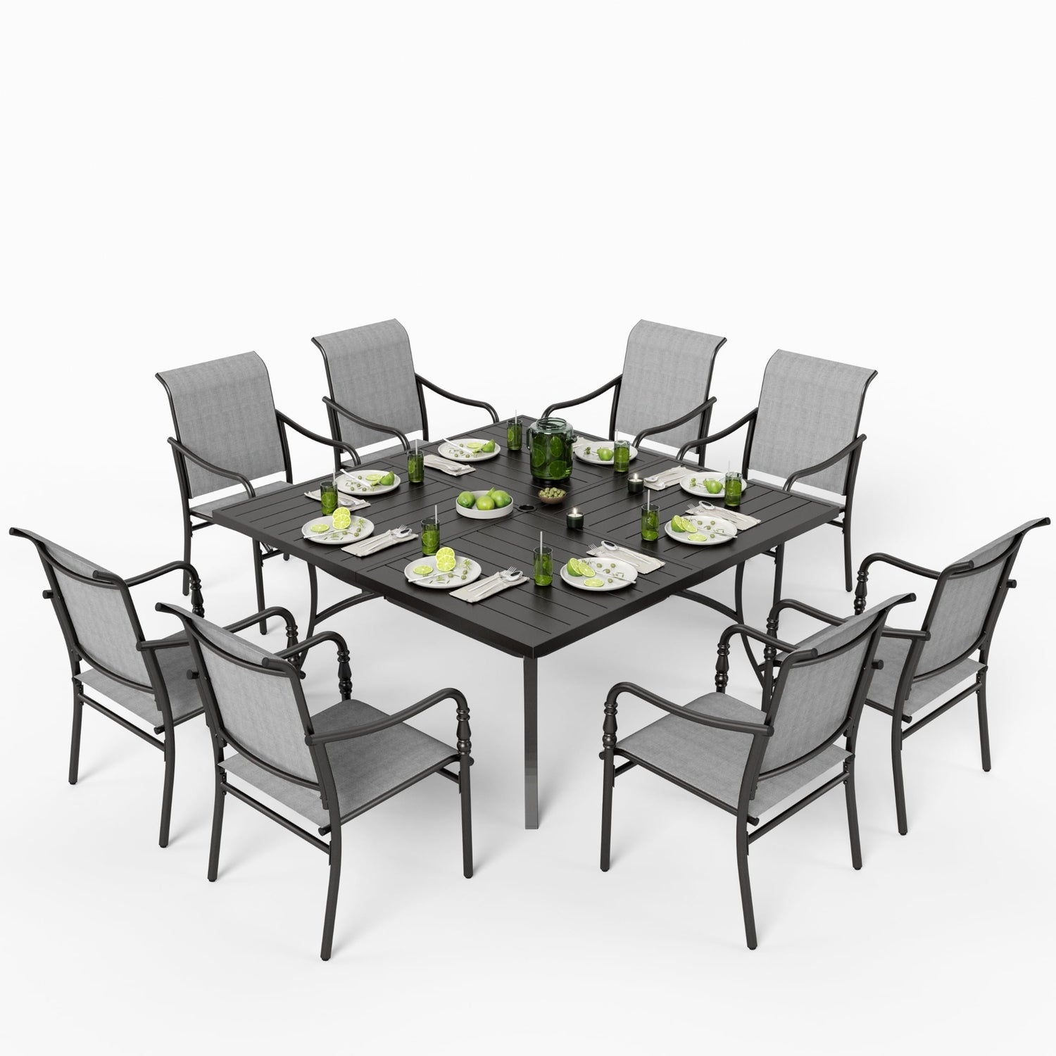 MIXPATIO 9 Piece Patio Dining Set, 8 x Textilene Dining Chairs, 60" Square Outdoor Dining Table with 1.57" Umbrella Hole, for Garden Lawn Porch and Backyard Poolside, Grey