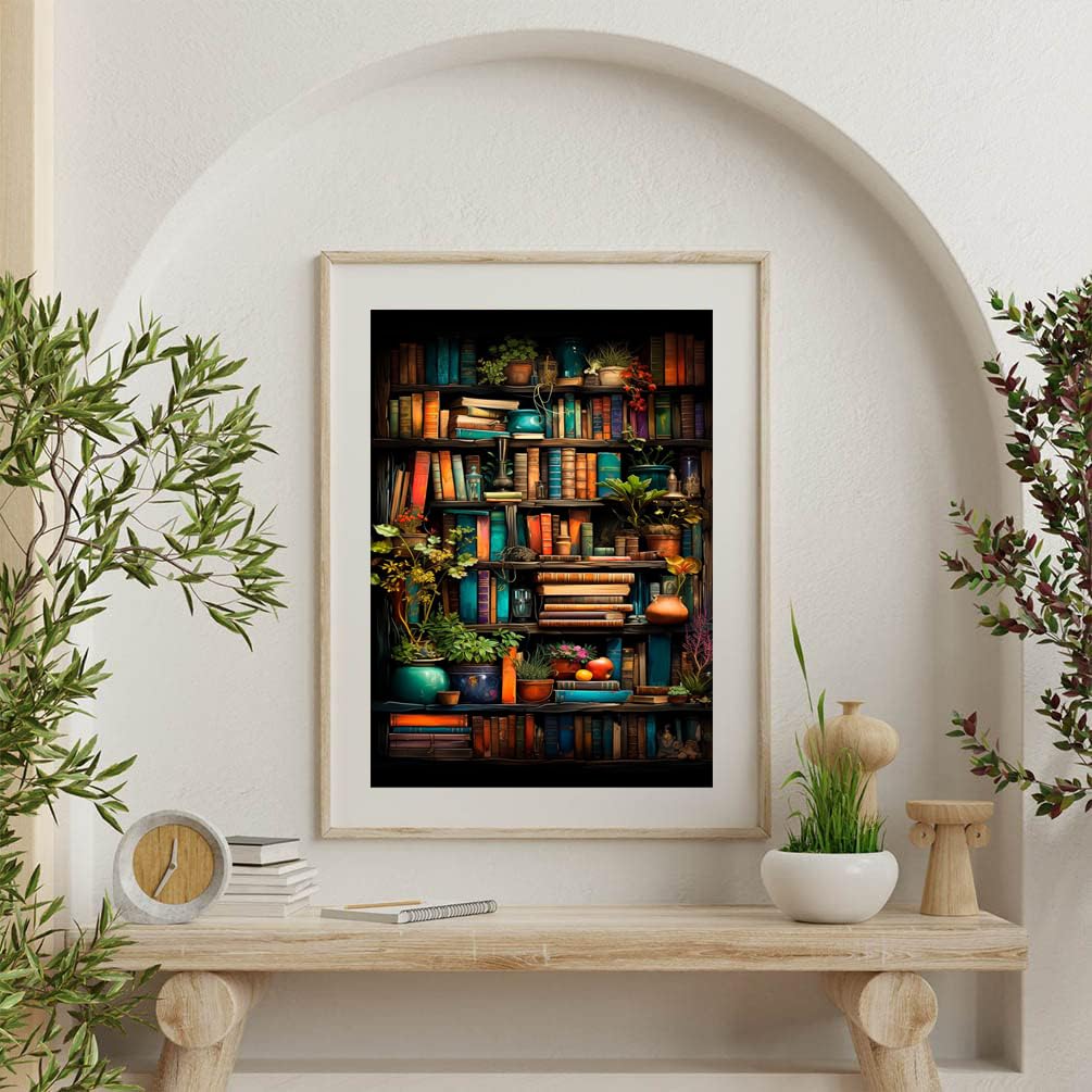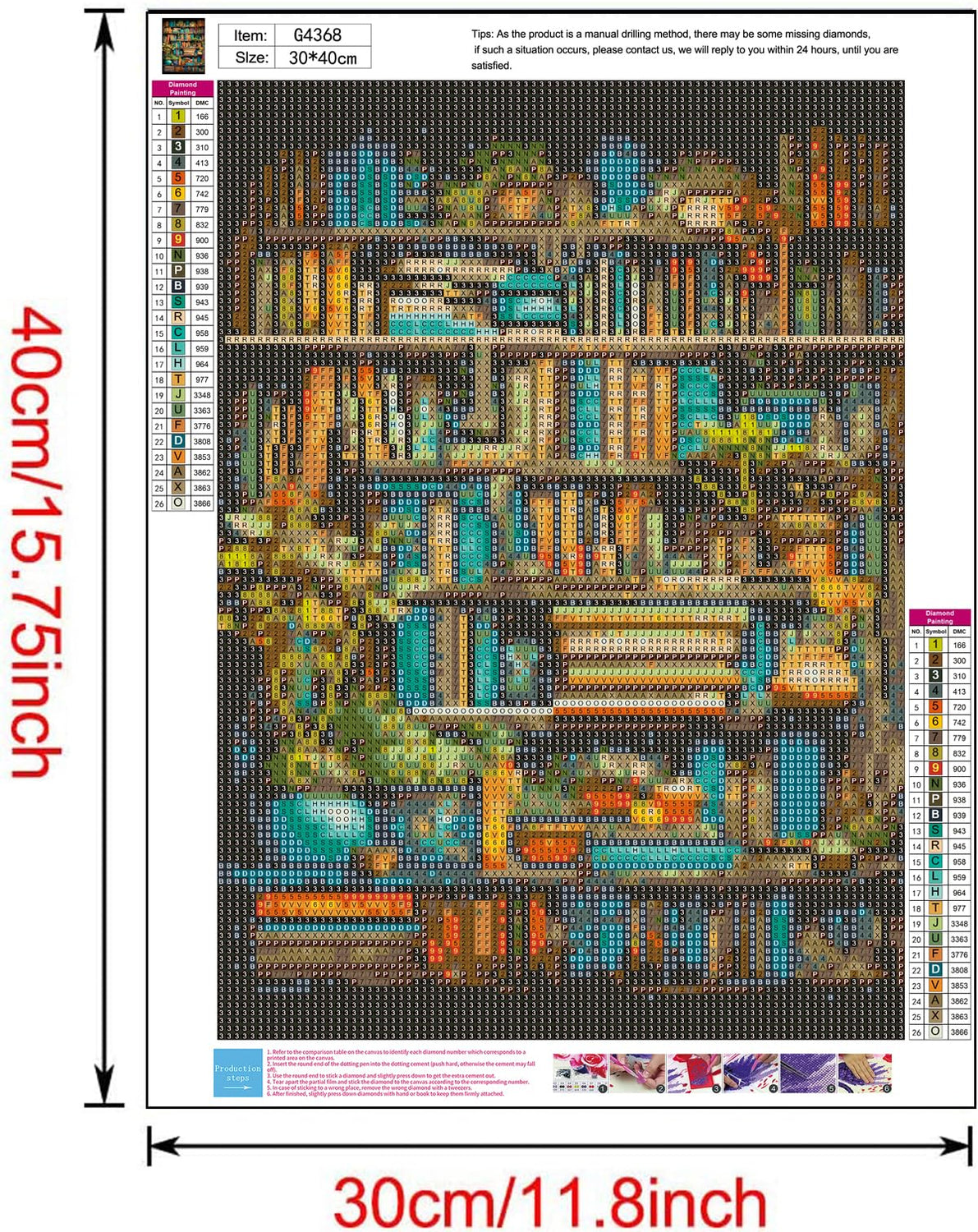 MjhRcll Diamond Painting Kits for Adults, Bookshelf Plant DIY 5D Diamond Art Kits for Adults Beginners Full Round Drill Diamond Dots Crystal Craft Kits for Home Wall Art Decor Gifts 12x16 inch