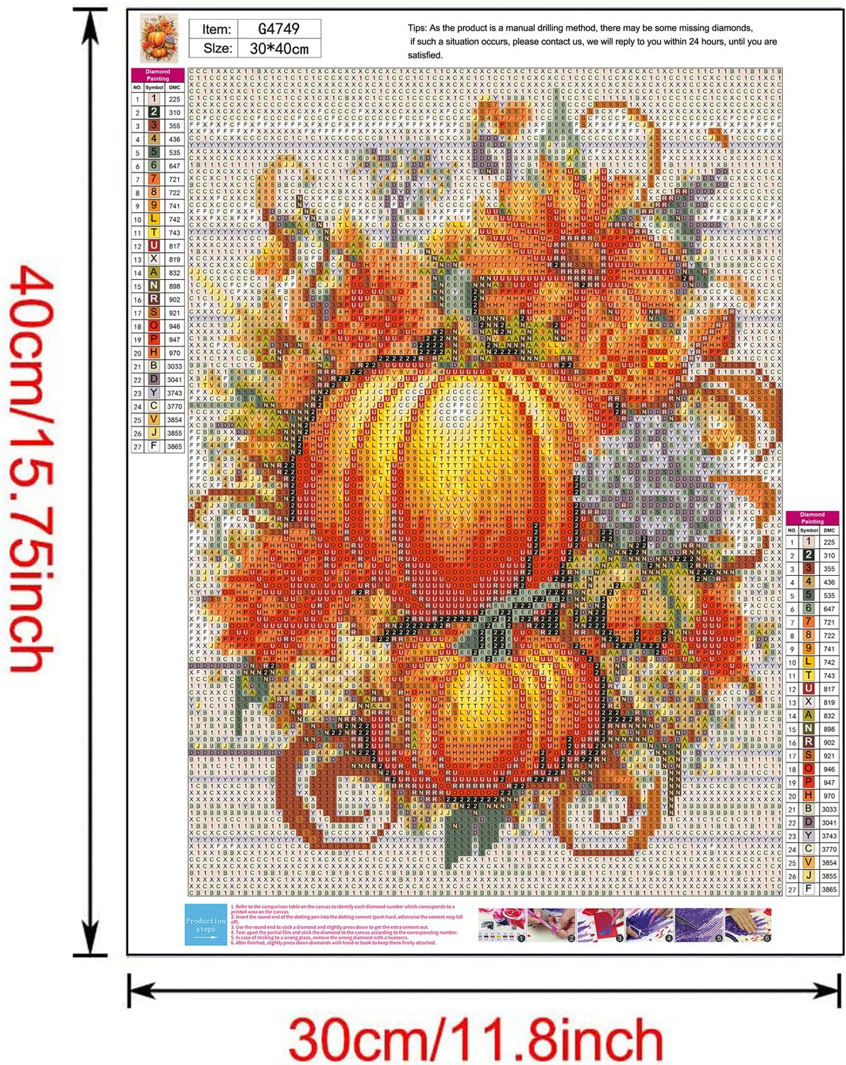 MjhRcll Fall Pumpkin Diamond Painting Kits,5D DIY Thanksgiving Diamond Painting Kits for Adults,Full Round Drill Diamond Dots for Home Holiday Decor Inch12X16/30x40cm