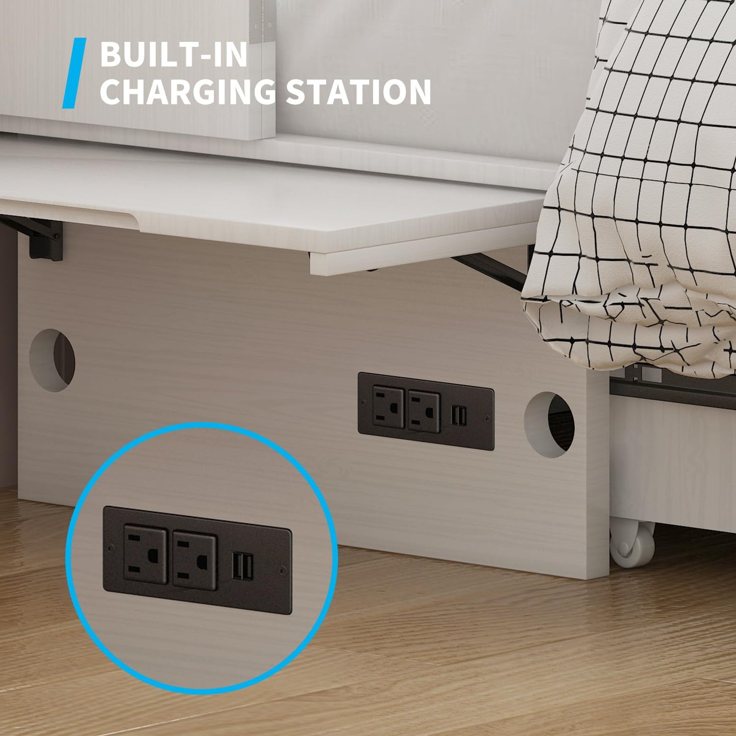 - 🛋️【Charging Station with USB Port】 The Queen Size Murphy Bed comes equipped with a charging station, complete with USB ports, allowing you to conveniently charge your devices without the hassle of searching for outlets, stay connected while enjoying the comfort of your bed.
