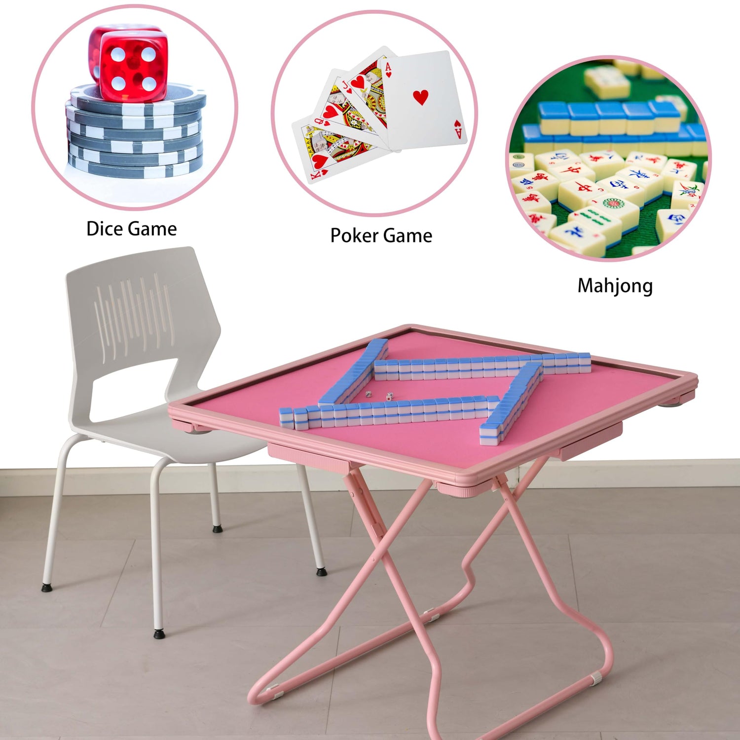 MJTABLE Pink Mahjong Table, 35" Square Game Table with Resistant Wood Tabletop, Portable Folding Card Table with 4 Drawers and 4 Cup Holders, Domino Table for Party, Game Nights, Gifts for Retirees
