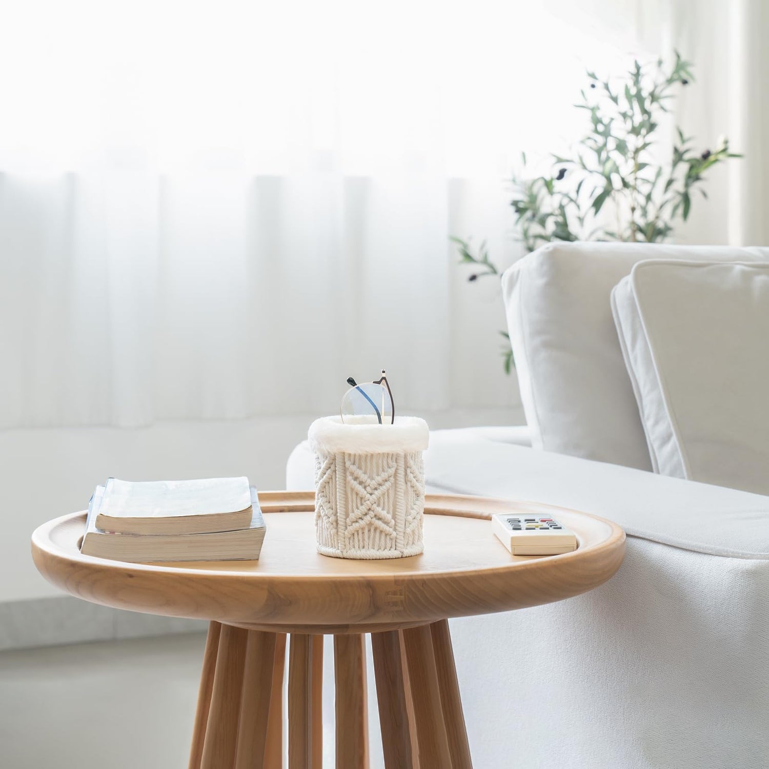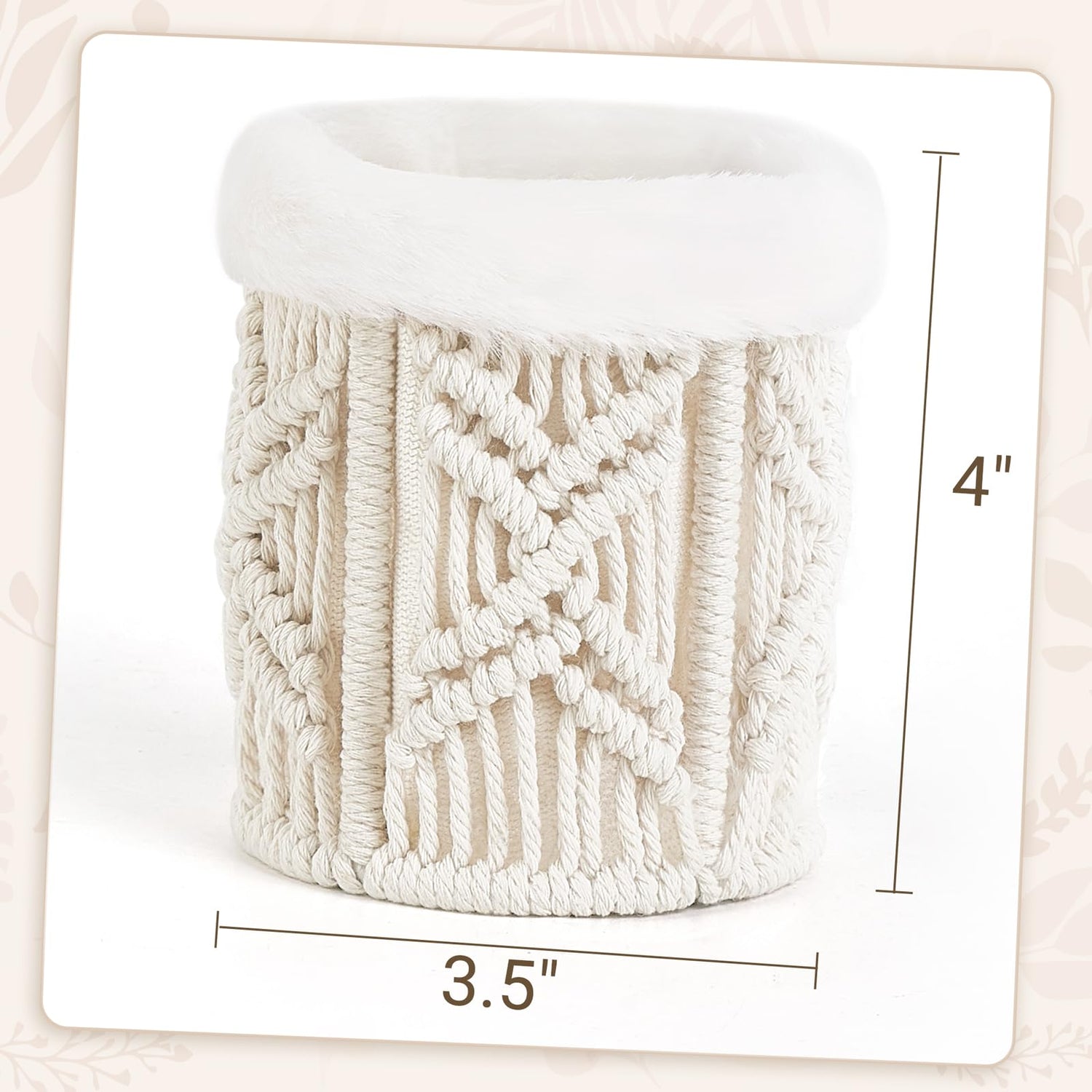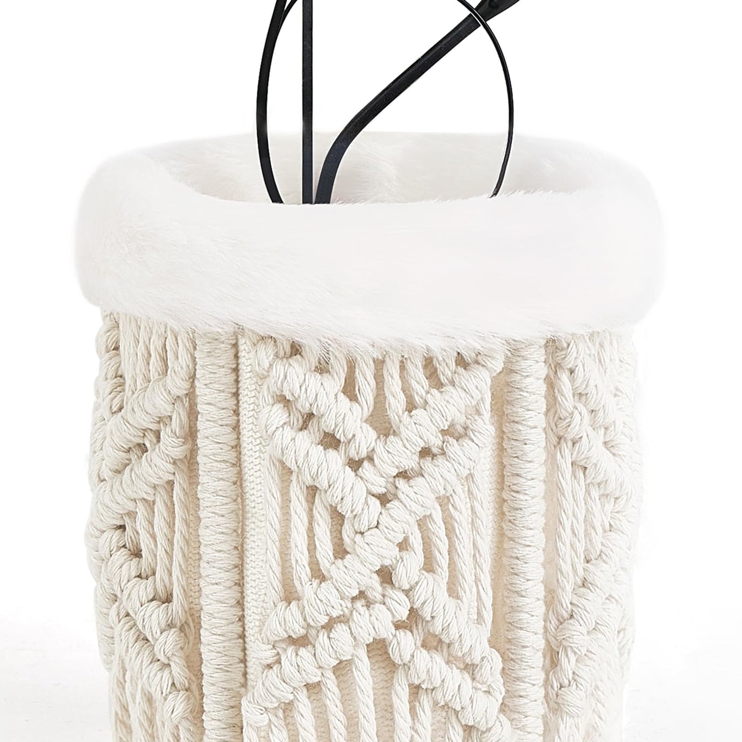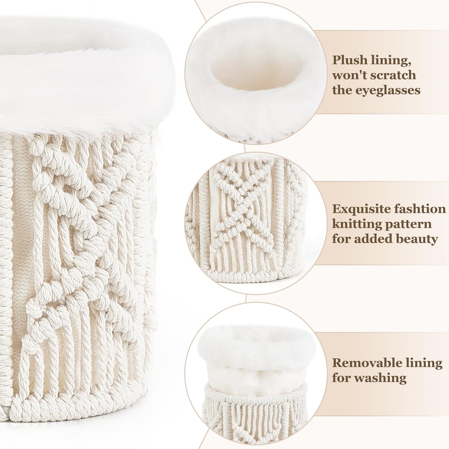 Mkono Glasses Holder for Nightstand Macrame Plush Lined Glasses Stand for Multiple Glasses Boho Decor Eyeglass Case Holder for Office Desk Organizer