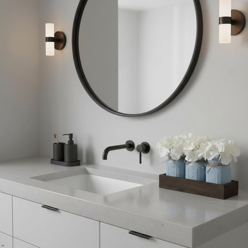 - Decorative & Multifuctional Mason Jars Centerpiece: This mason jar decor will add some rustic beauty to your bathroom, dining room, kitchen, office bar and more. As kitchen decorations above cabinets. Or you can hold toothbrush, make-up brush, cotton swaps in the bathroom. Or can organize utensils for kitchen, use to store cooking utensils tableware, use as the stir, whisk, spoon, knife and fork storage jar
