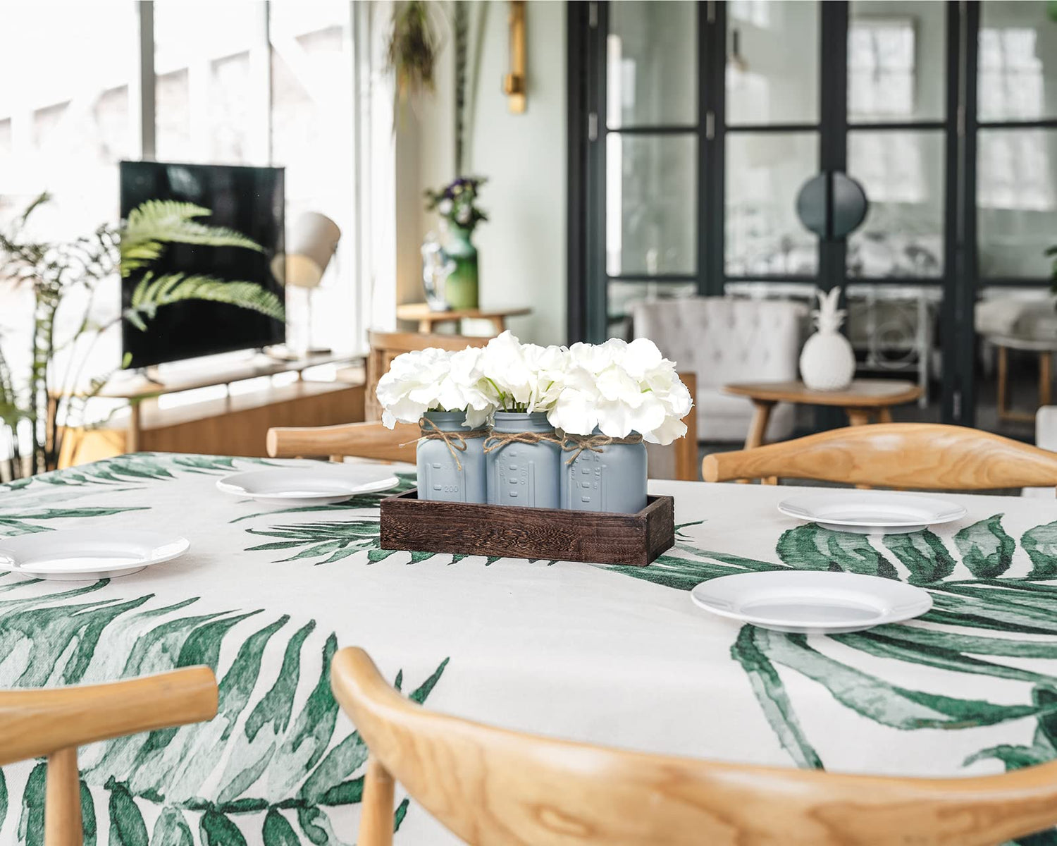 - Farmhouse Centerpieces for Table: This decorative mason jars with wood tray is a soft and gorgeous color mason jars Centerpiece! Perfect for decorative your dining room counter table or adding rustic style to your room