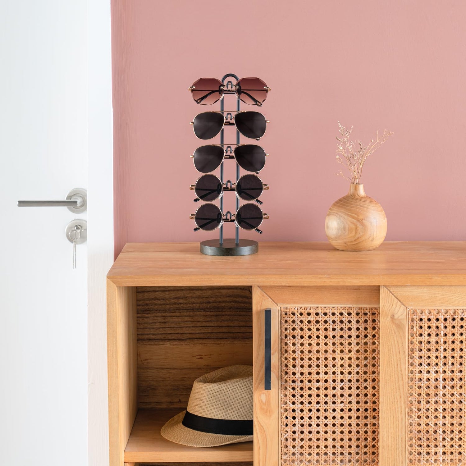 - Simple & Stylish Design : Rustic round wood base and premium industrial iron frame are the perfect combination of retro and modern design styles. Suitable for a variety of style home decors. Great sunglasses rack to put on bedroom or coffee table to organized and display your sunglasses, eyewear and other accessories.
