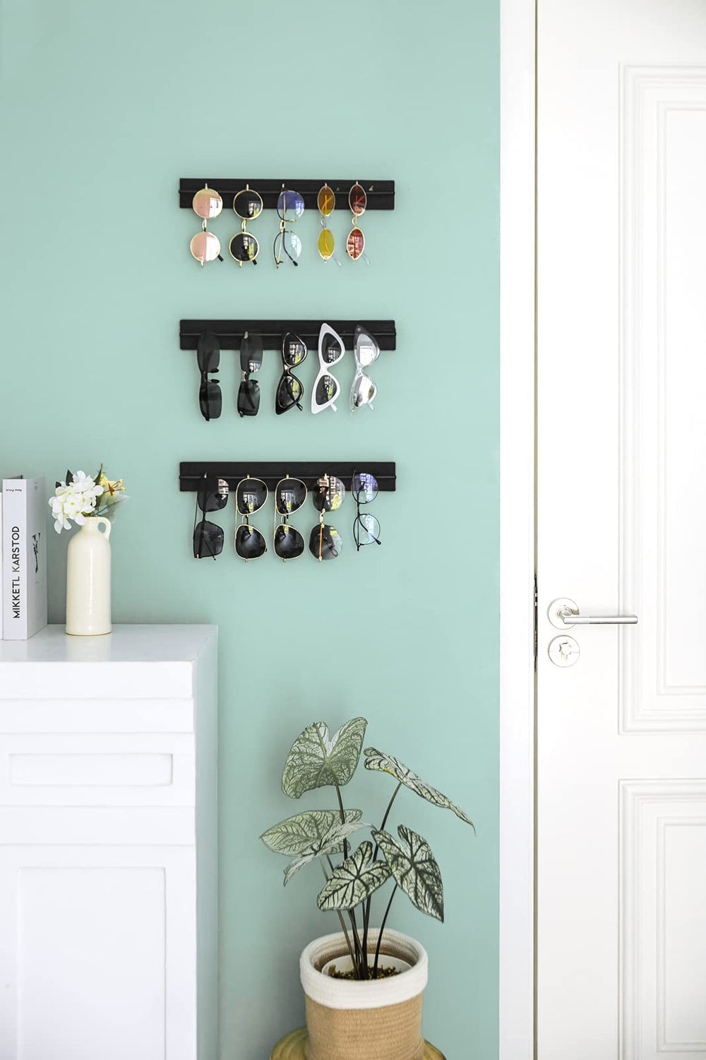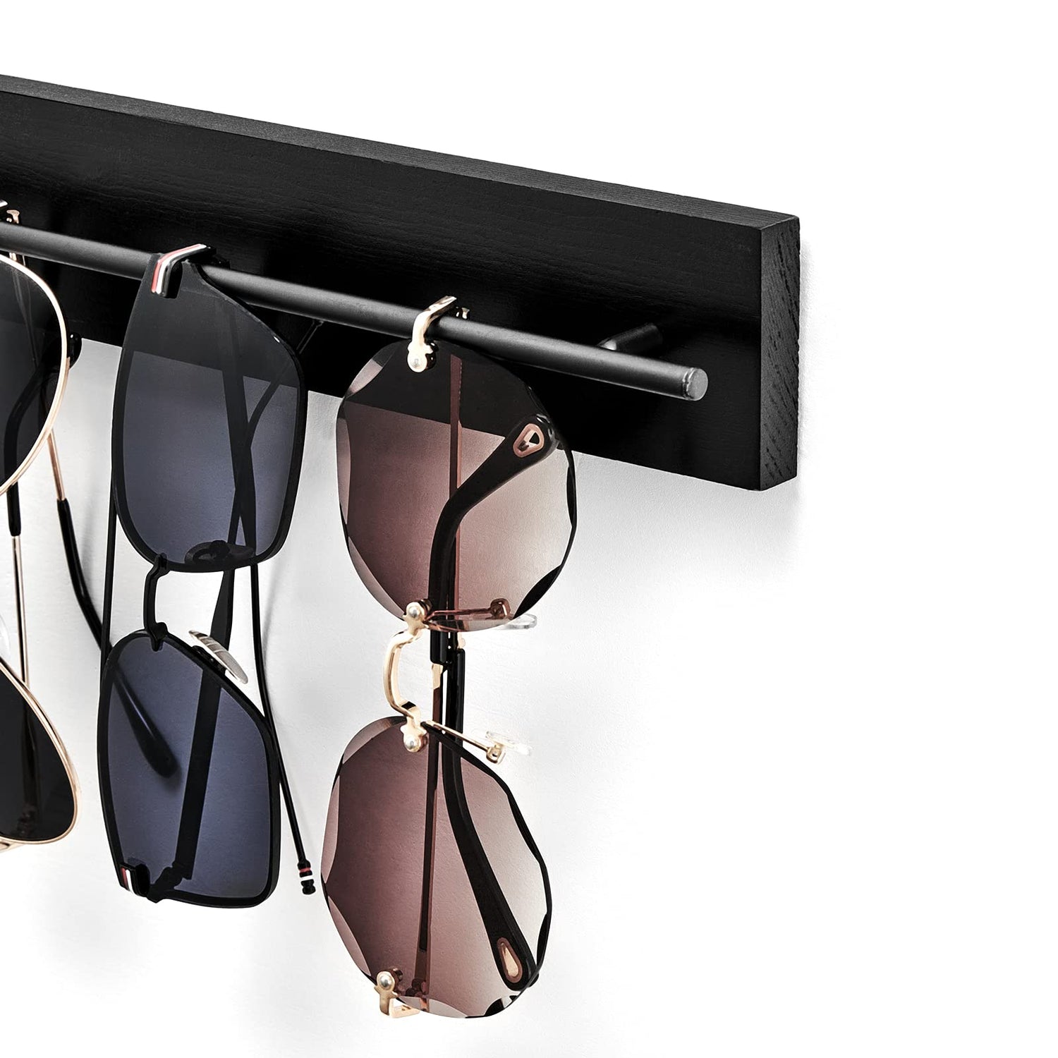 - High Quality & Functioanl: Our sunglasses organizer or wall is made of high quality wood and solid metal. Iron rod with advanced spraying, it will not easy to rust. It is a good way to store your sunglasses,eyewear,shades, even bowties.Prevents scratching lenses and allows for a quick survey for just the right glasses to match your mood.