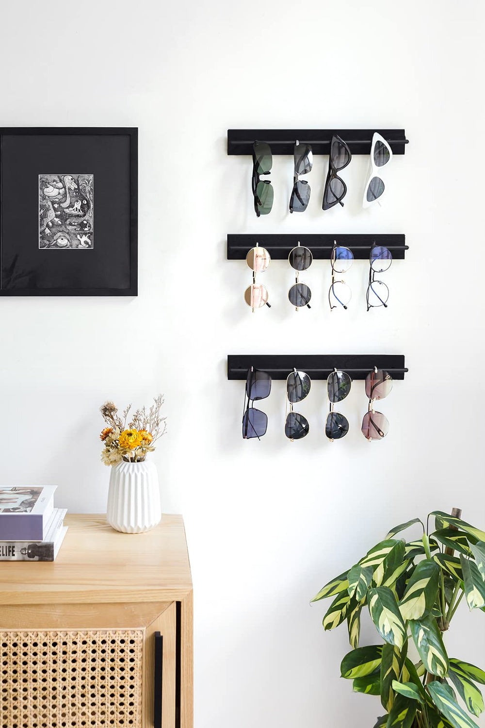 - STYLISH ORGANIZER DESIGN: Hang your sunglasses on this retro wooden sunglasses organizer wall mount, keep your sunglasses organized and beautifull, help to quickly see the sunglasses what you placed. Suitable for rustic,farmouse, simple, modern and other family practical decoration.