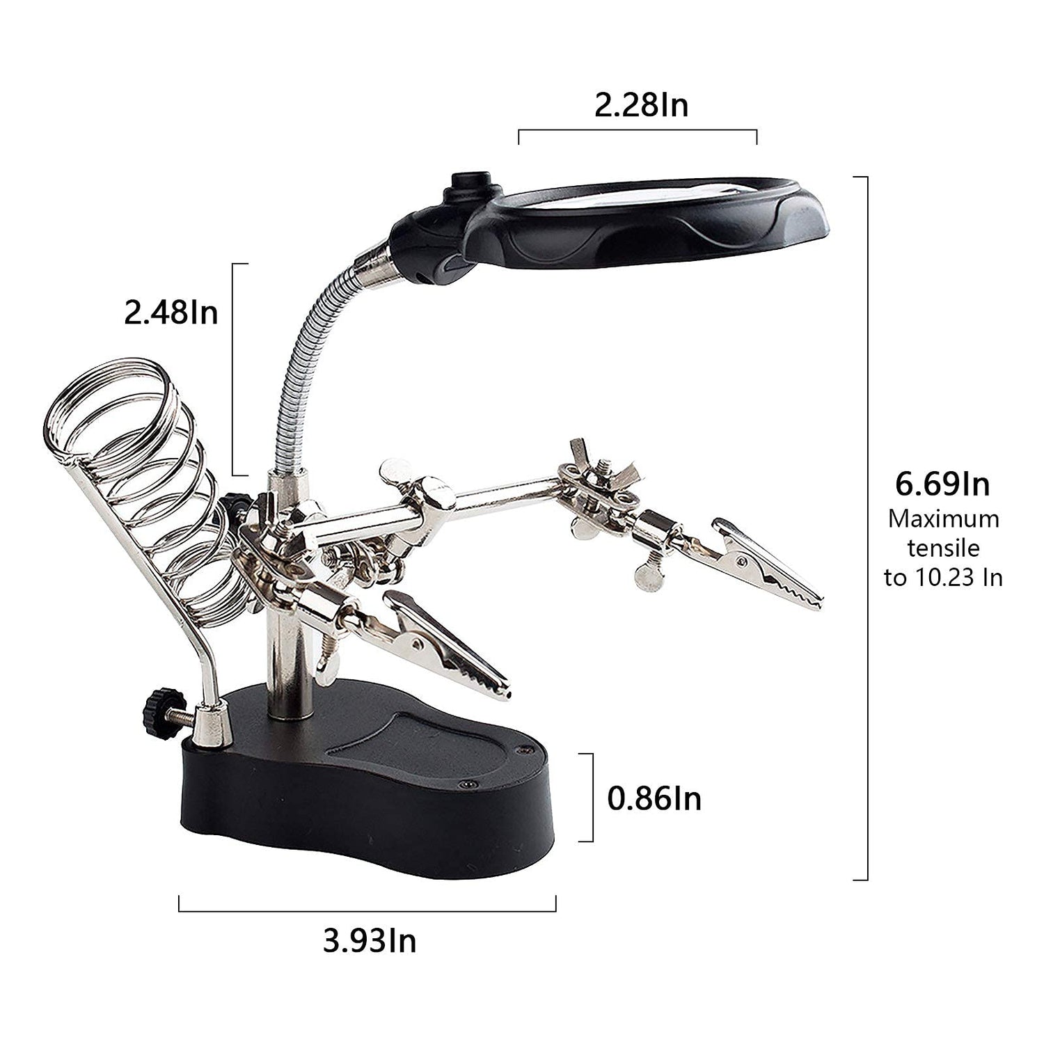 - Flexible Enough:You can adjust the bracket, lamp and alligator clip of the helping hands magnifying glass stand to the desired angle to provide maximum clarity, allowing you to see complex details, thus ensuring lighting and clarity The magnified view experience a better reading and working environment! So you will feel more convenient and comfortable when using it.