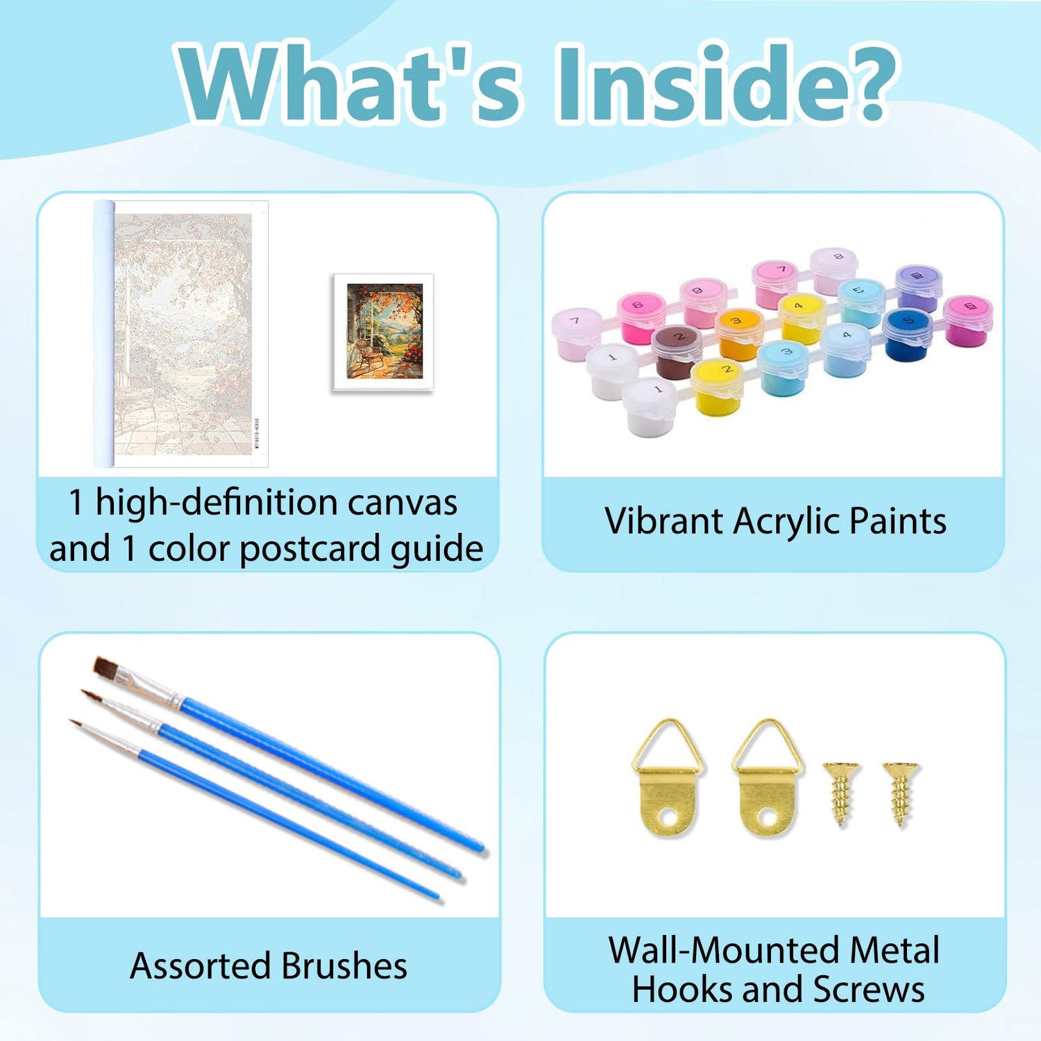 - 【High-Quality Acrylic Paints】: Featuring 20 to 30 fade-resistant colors specifically formulated for stretched canvases, our acrylic paints in the adult paint by numbers kits provide an authentic oil painting texture without the hassle of mixing paints.