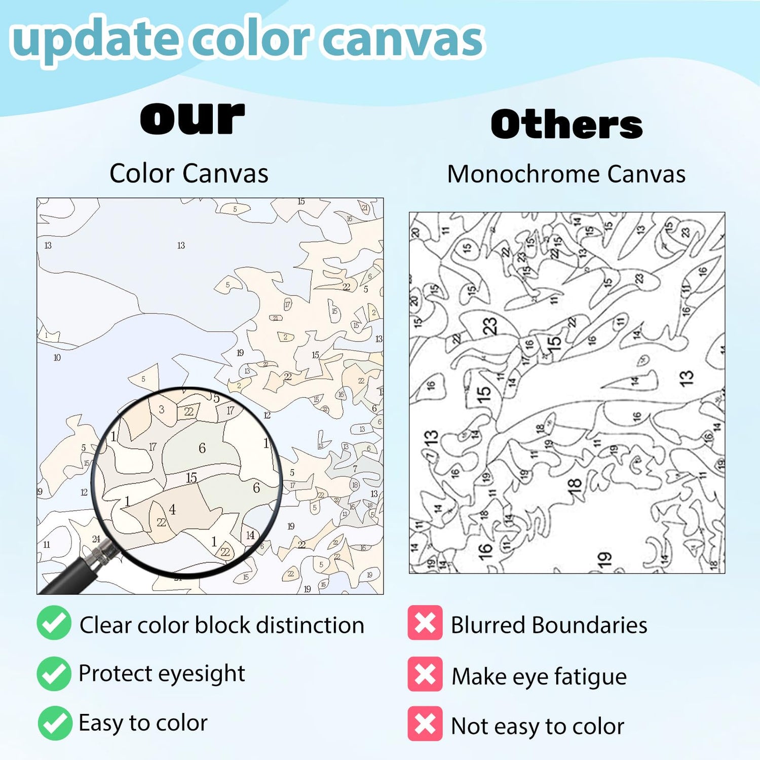 - 【Stress-Free Art Therapy】: Designed with ultra-detailed patterns, our adult paint by numbers kits allow artists of all skill levels to enjoy the fun of acrylic paint by numbers kits, empowering everyone to unleash their creativity and complete beautiful artworks.