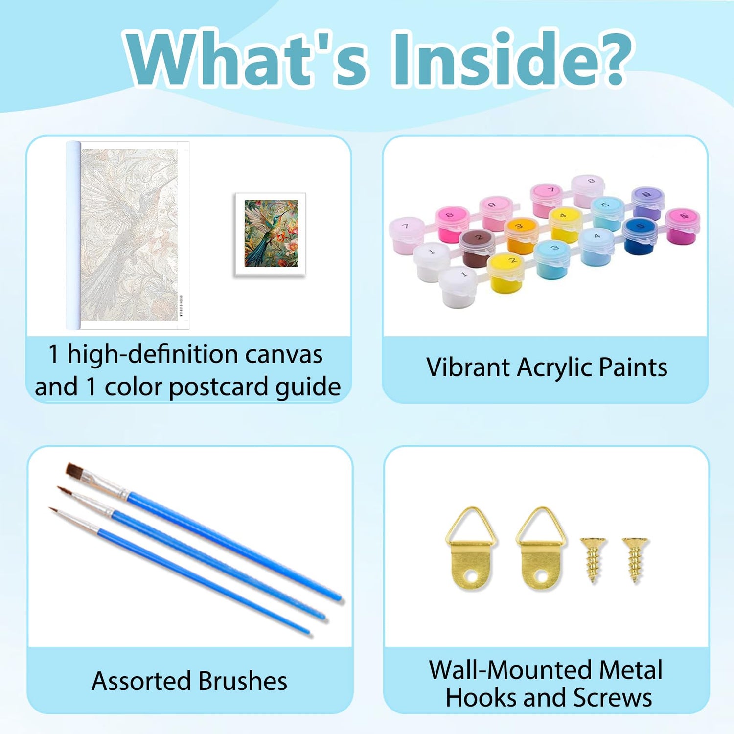 - 【Ready-to-Display Artwork】: Each masterpiece from our paint by numbers kits for adults comes with pre-drilled hanging accessories, transforming your completed paintings into exquisite wall decor that enhances your home or office aesthetics.