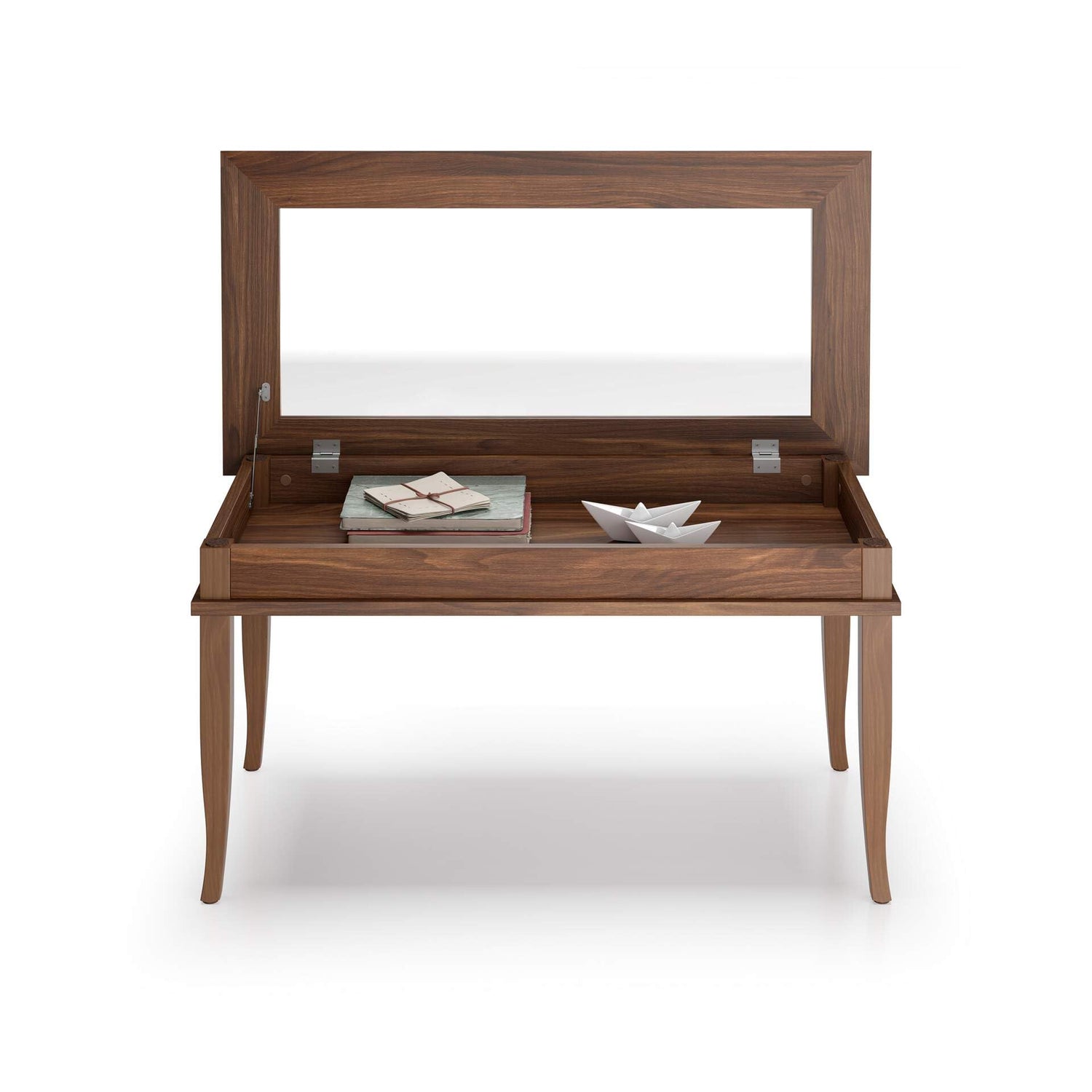 - DESIGN: With its flared legs and elegant shape, the Classico walnut coffee table will give your living room a refined touch. The Classico coffee table also features a display case in which you can place your ornaments and memories.