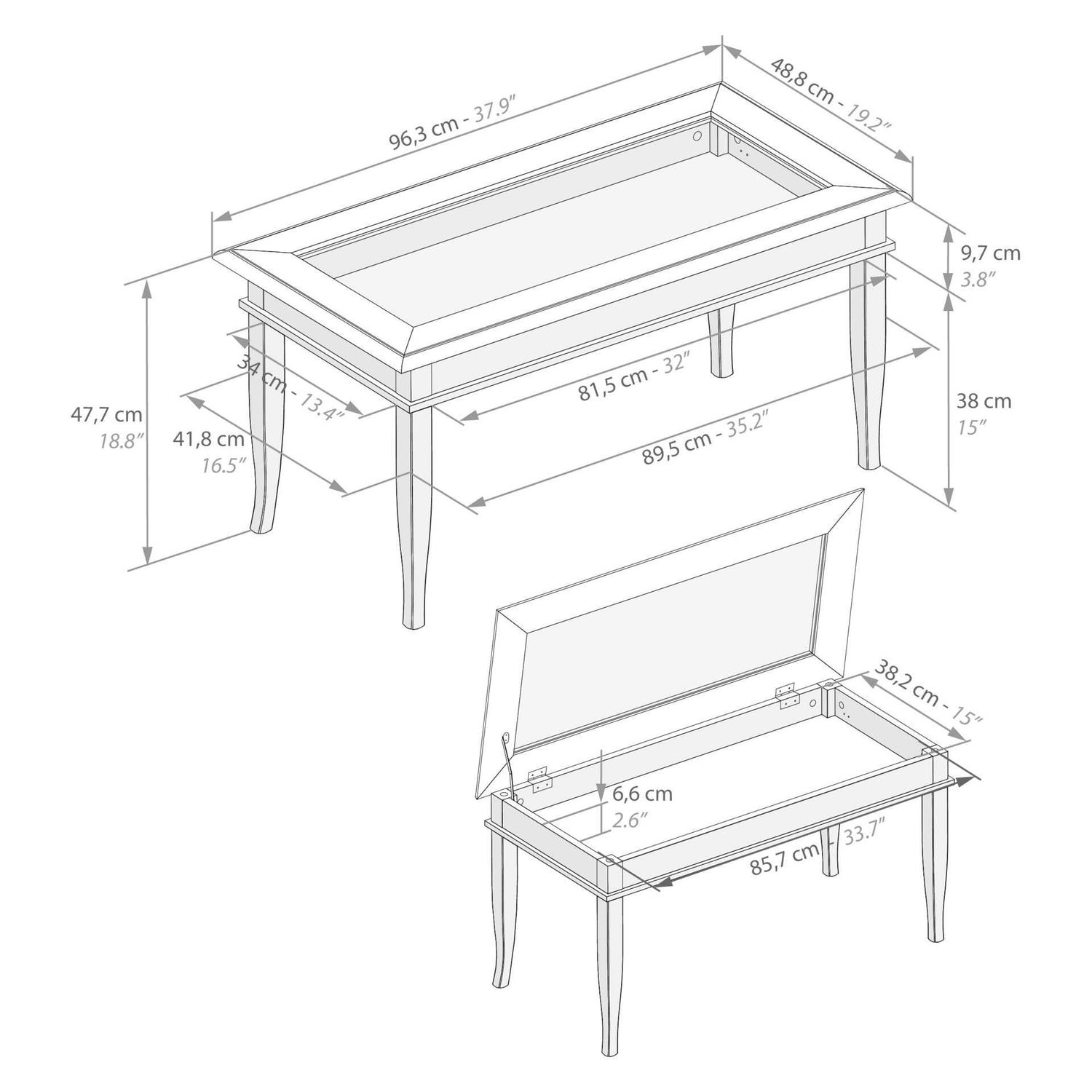 - FEATURES: The walnut Classico coffee table measures 37.91 x 19.21 x 18.77 in and is made of high quality melamine and glass. The case can be opened and allows you to display objects and ornaments, keeping them away from dust.