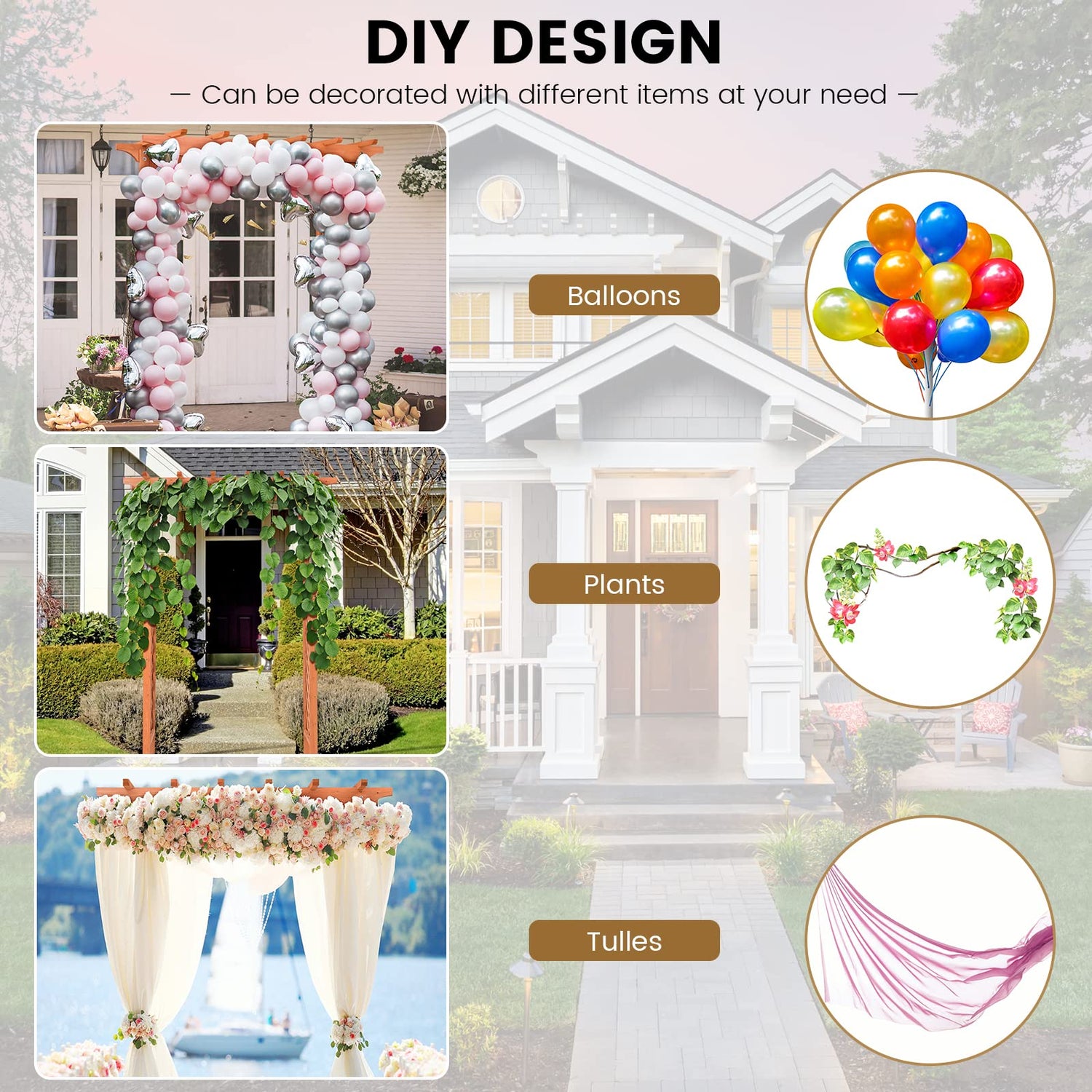 With its captivating traditional arch and pergola top styling, this piece becomes a striking focal point in your garden, patio, or yard. Its versatility shines as it can be adorned with climbing plants, flowers, LED strip lights, or balloons for indoor and outdoor special events, such as garden parties or weddings. Enhance your garden or ceremony with the warm and natural ambiance provided by this archway.