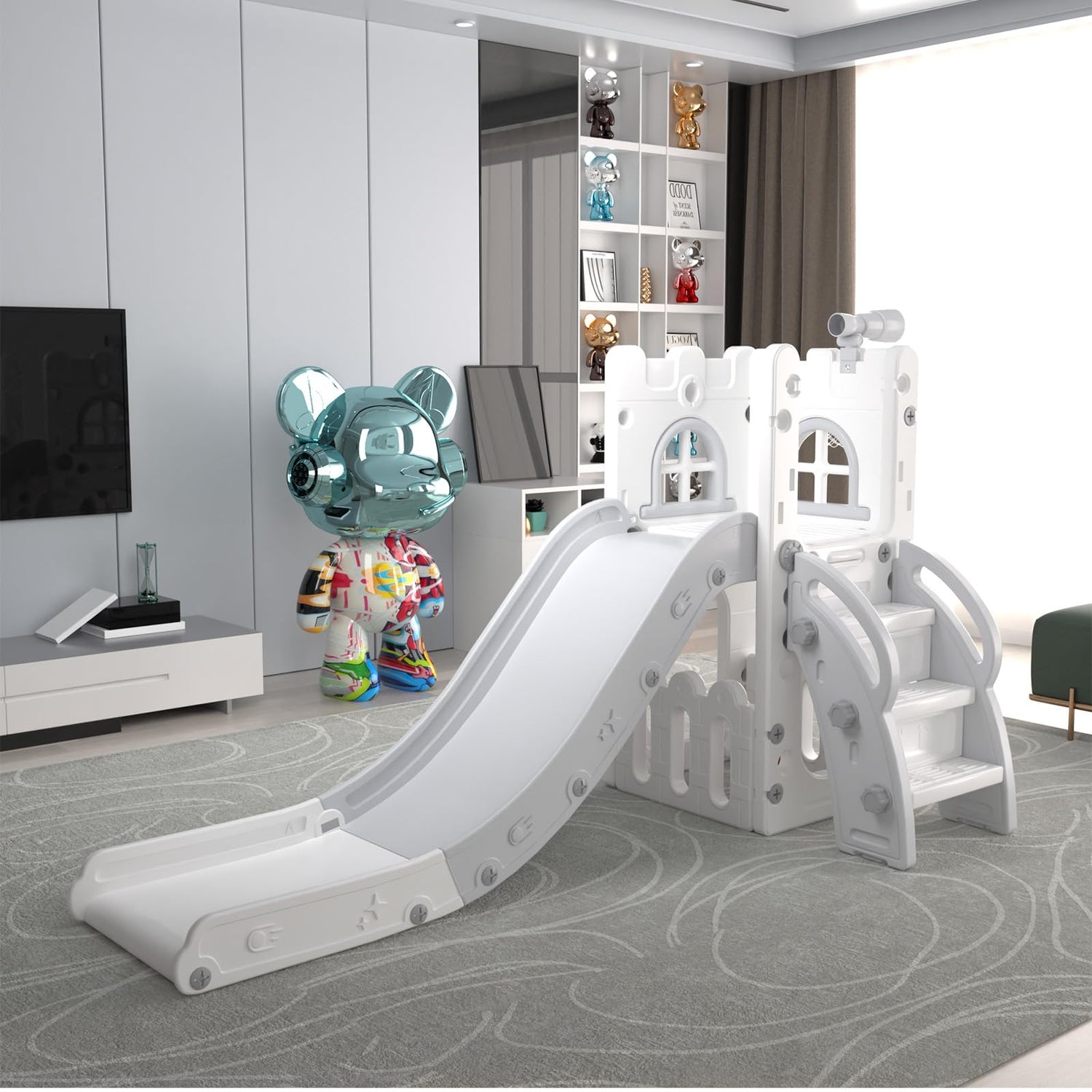 MOCUTEEN 6 in 1 Toddler Slide,Baby Playset for Indoor Outdoor Playground with Basketball Hoop,Storage and Telescope,Climbing Toys for Toddler Playground Playset