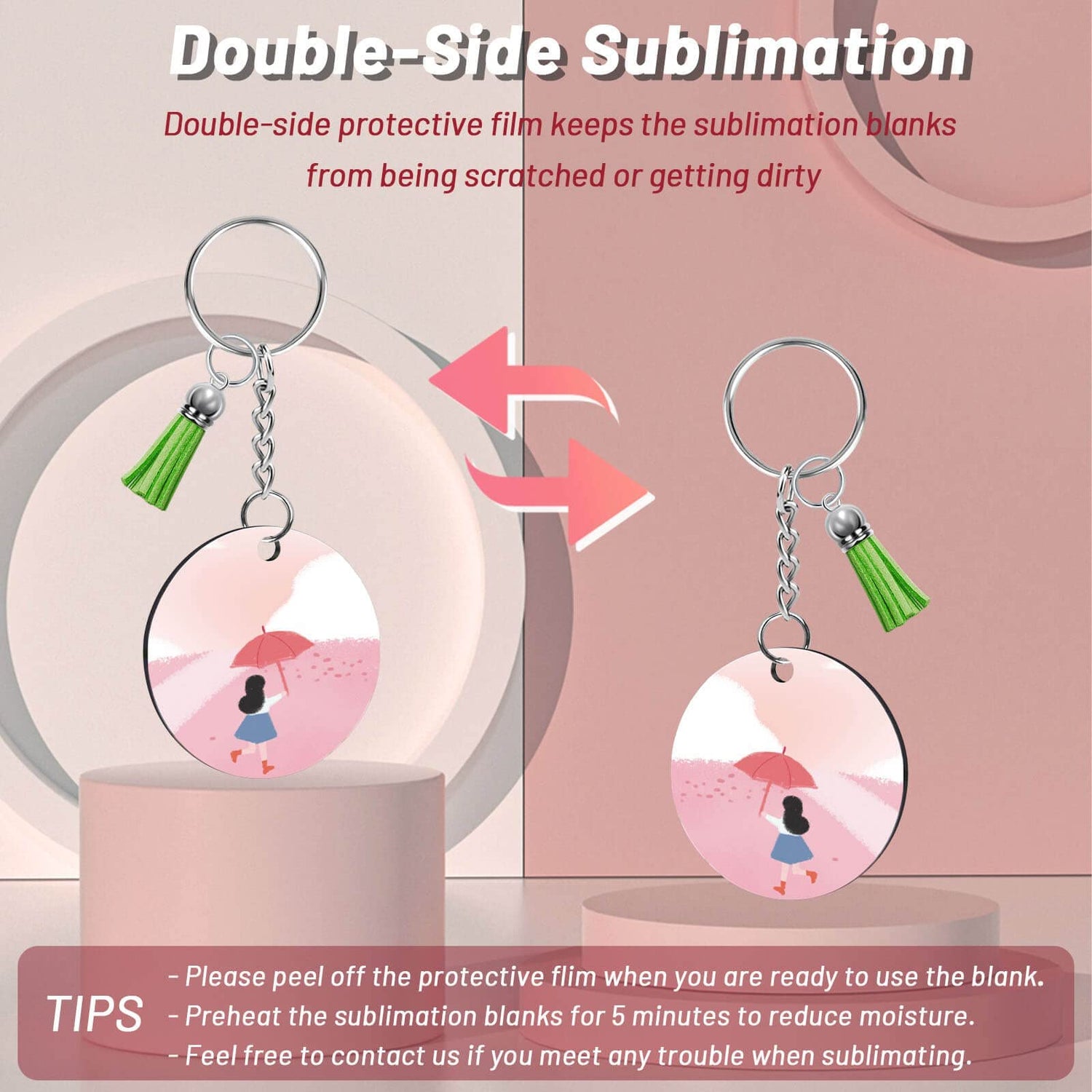 - 【Double-side Protective Film】Please Note that all the sublimation blanks are covered with protective film on both sides that should be peeled off when you are ready to use the blank. This protective layer keeps the round sublimation blanks from being scratched or getting dirty.