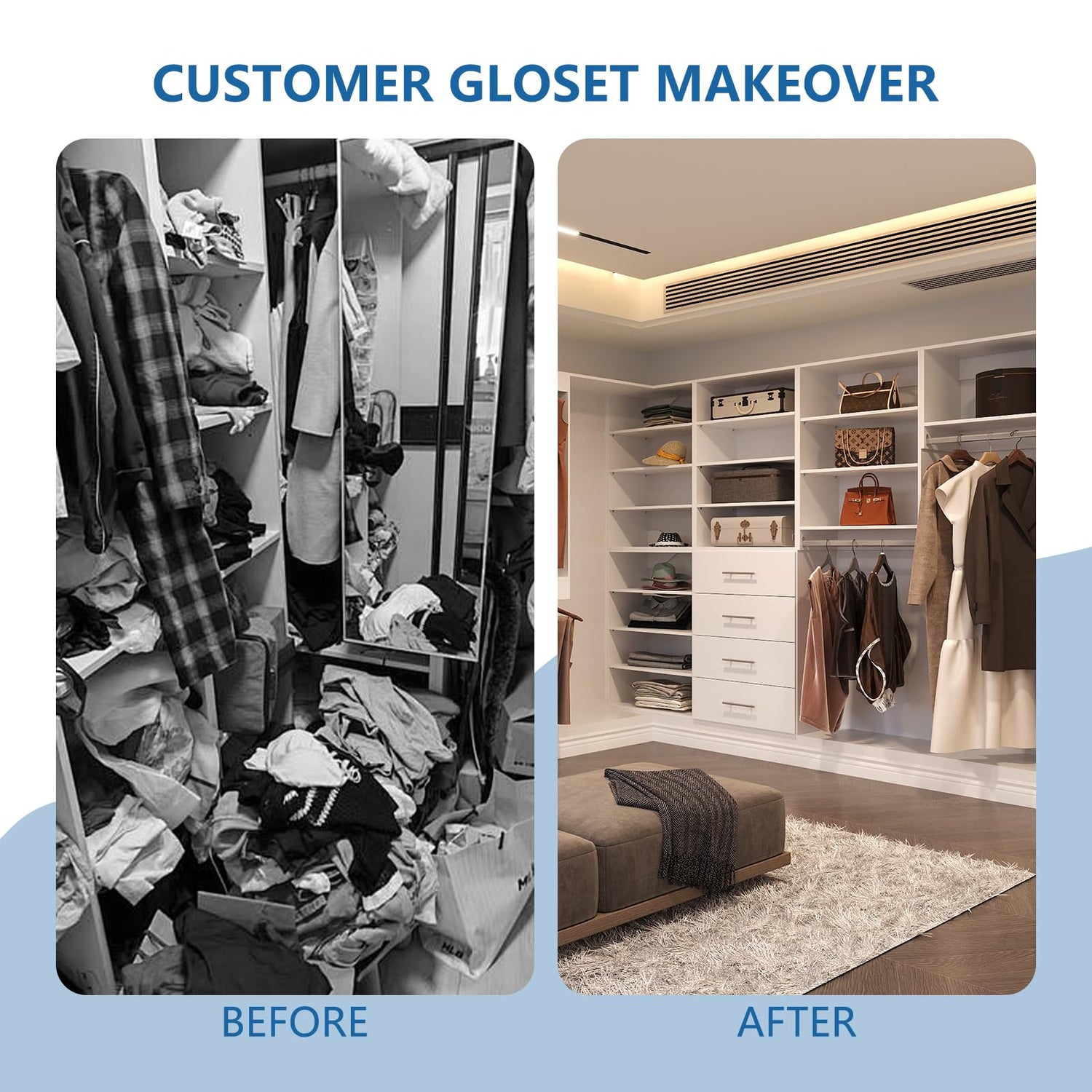 - DIY Customization Design: Our closet system puts the design control in your hands, allowing you to DIY the wardrobe closet to your preferences. You can mix and match different modules and accessories flexibly based on room size, personal style, and storage requirements to create a truly unique closet organizer system space.