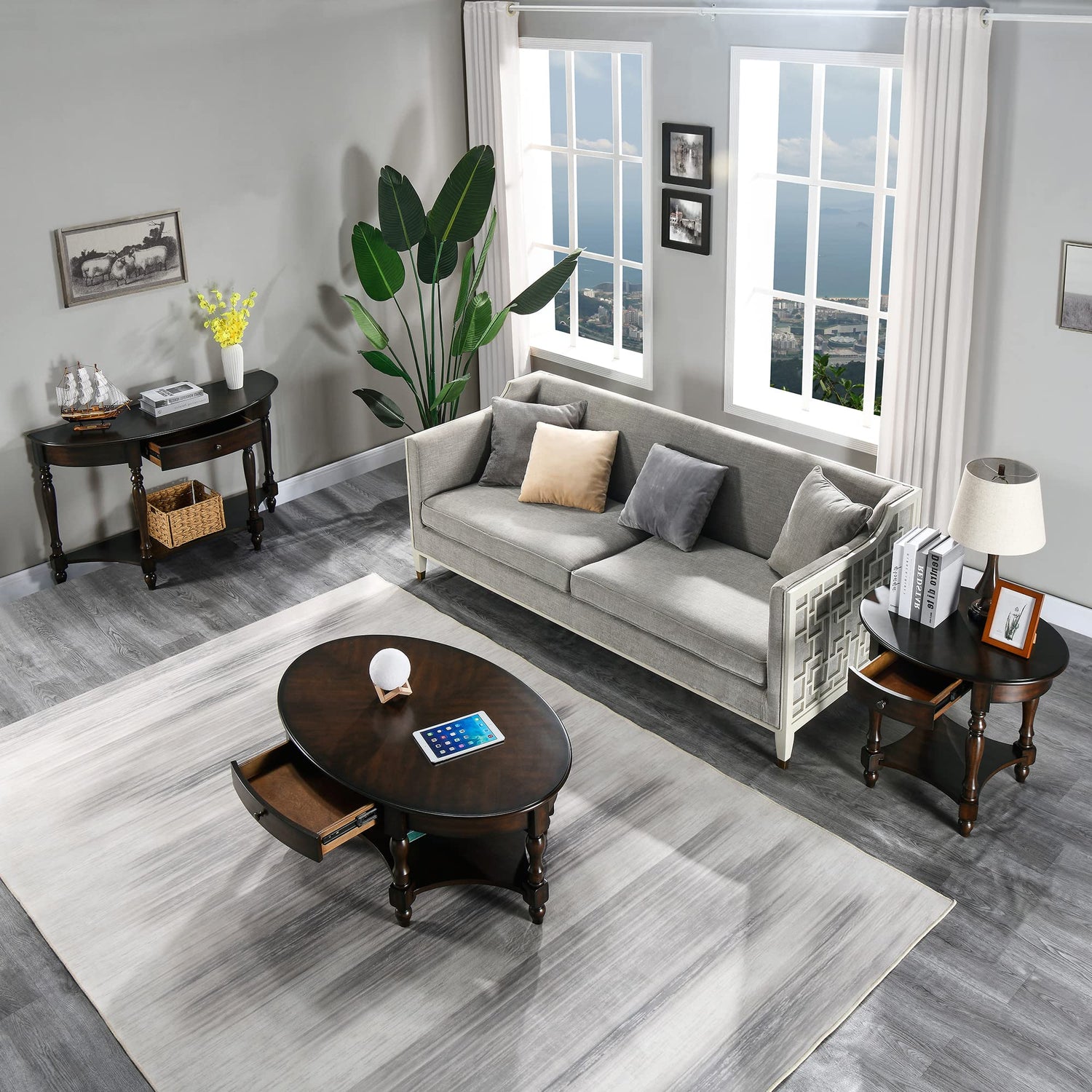 - What You Get? One elegant coffee table with retro walnut, Traditional oval living room table with solid wood and large storage space. One beautiful coffee table is one additional subject to your home.