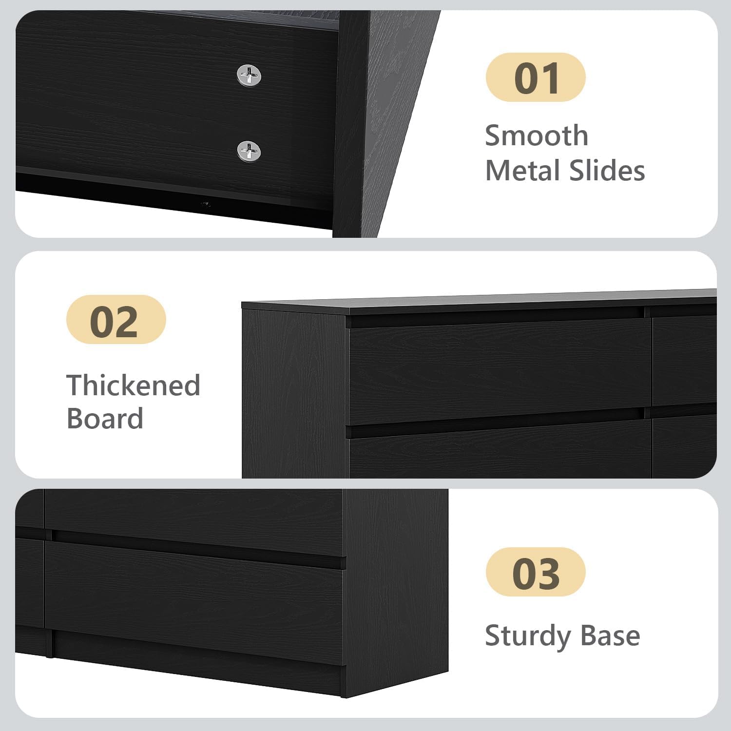 • 【Sleek Design】Our black dresser features a clean, modern aesthetic with its pure black, handle-free facade. The minimalist design and smooth surface give it a streamlined, elegant look that complements contemporary interiors. With its legless profile, the dresser offers a modern twist on classic storage solutions, ideal for those who value simple yet sophisticated furniture.