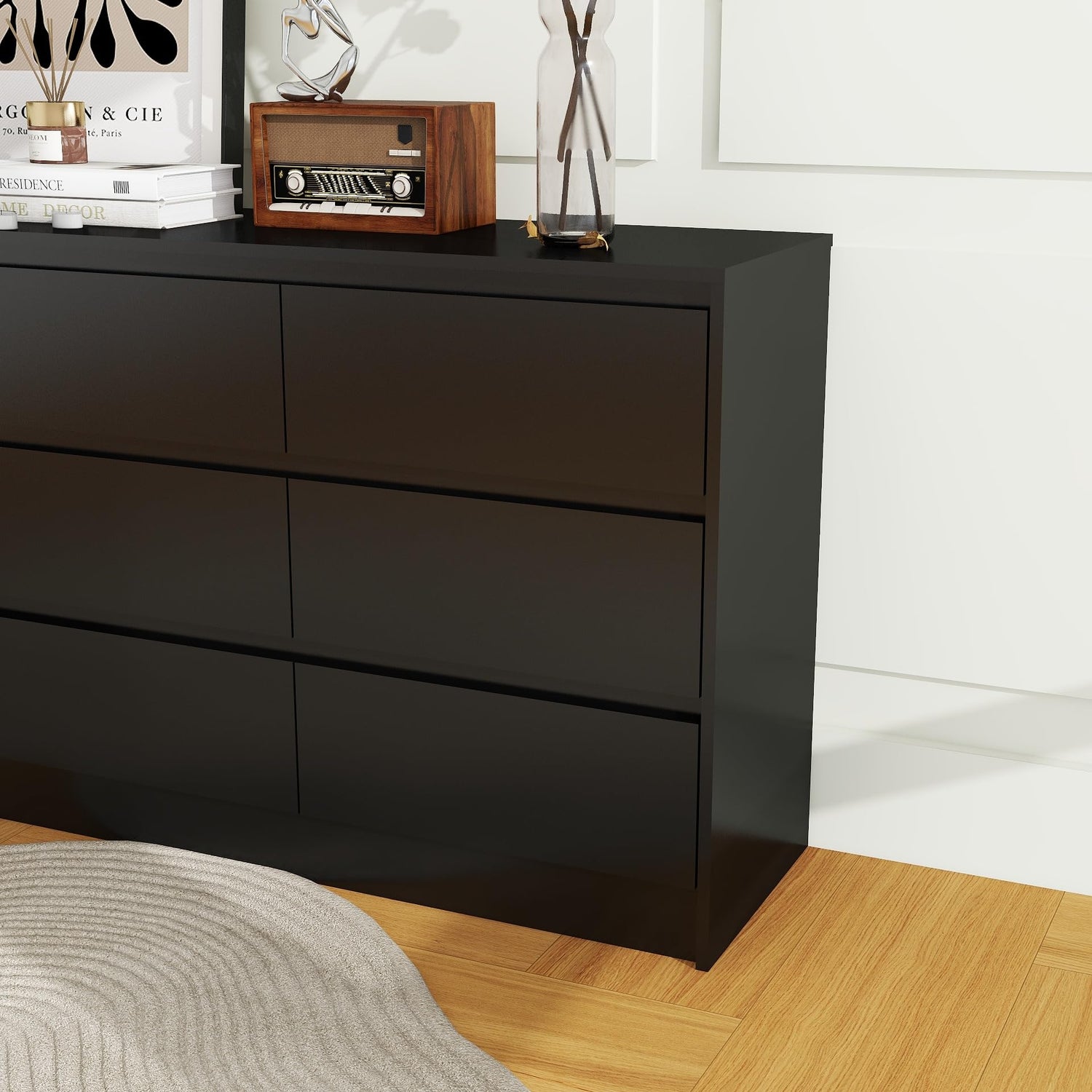 Modern 9 Drawer Wood Dresser for Bedroom, Large Floor Storage Drawer Cabinet Lateral Chest of Drawers Handle Free Organizer for Closet Living Room (Black, 9 Drawer)