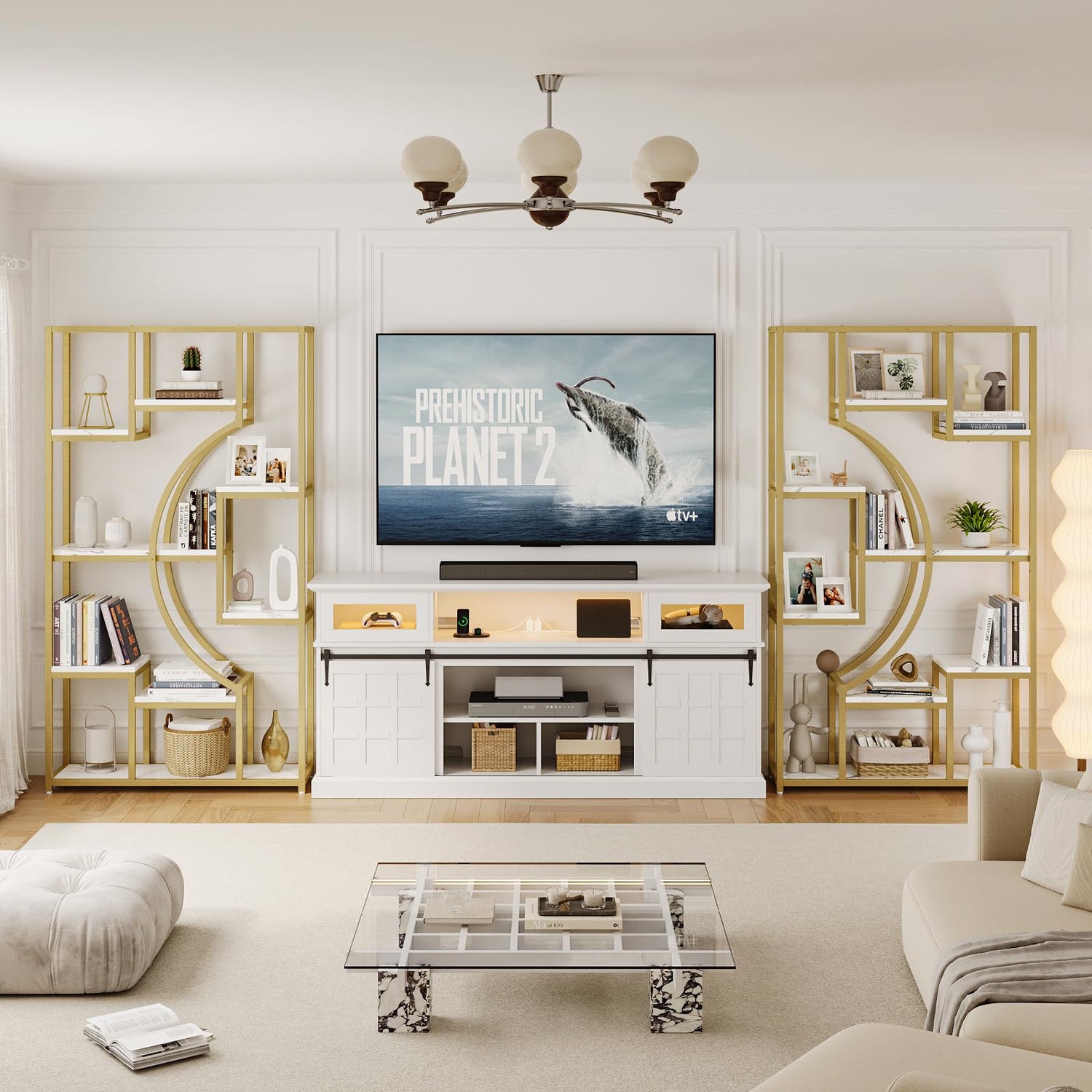 - ELEGANT DISPLAY SHELF: Showcase your precious collectibles on a stunning bookshelf. With its half-moon design and stylish matte golden iron brackets, this marble white bookshelf will earn you compliments no matter where you place it.