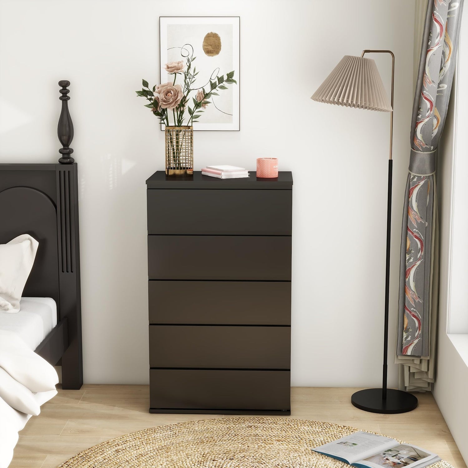 Modern Chest of Drawers, 4/5/6 Drawer Dresser Without Handles Floor Storage Drawer Cabinet Vertical Dresser Storage Organizer for Home Office (5 Drawers, Black)